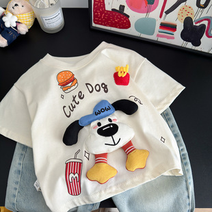 立体玩偶卡通印花趣味可爱汉堡男女童薄款 儿童纯棉短袖 T恤亲子款