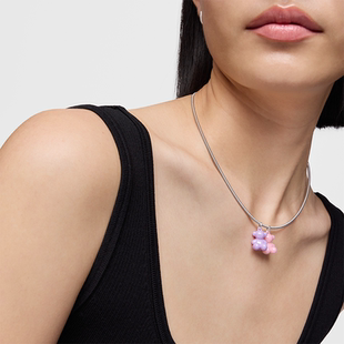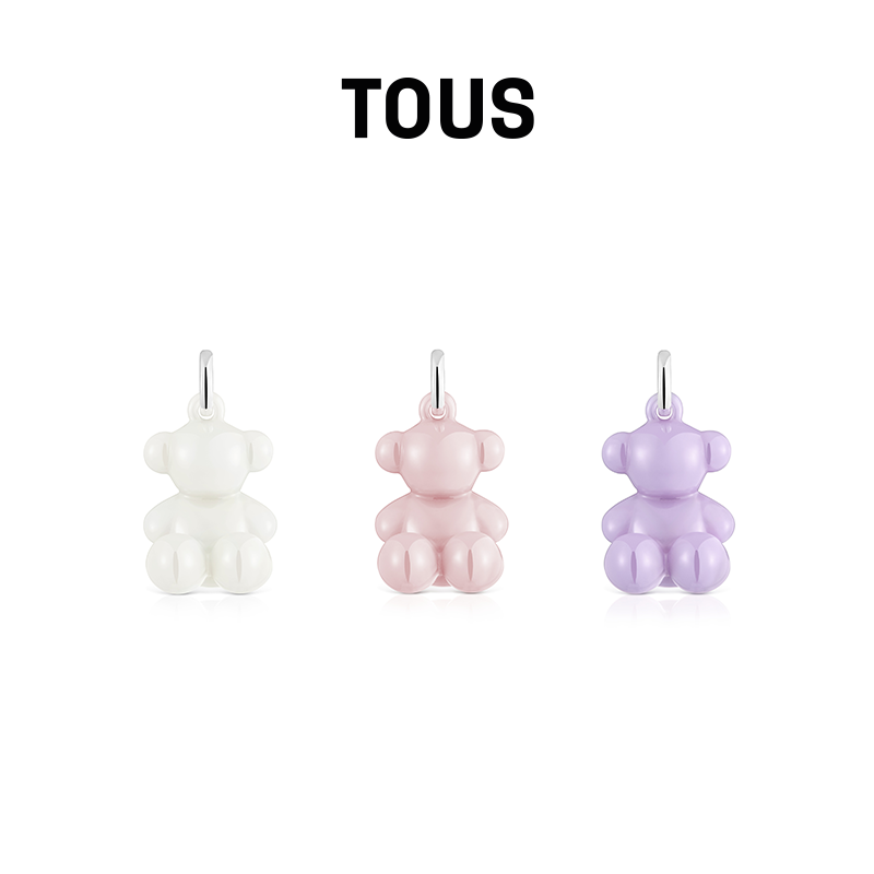 桃丝熊Bold TOUS Bear系列925银白色粉色陶瓷小熊吊坠女 新品
