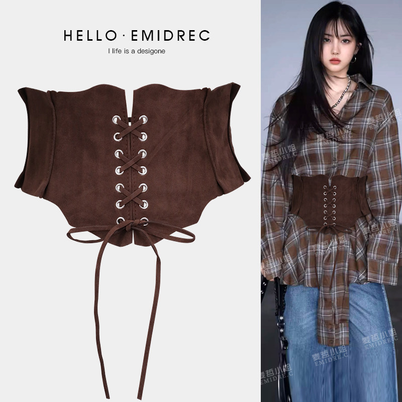 束腰外穿红色腰封配饰女宽腰带装 饰配裙子波西米亚哥特风亚比黑色