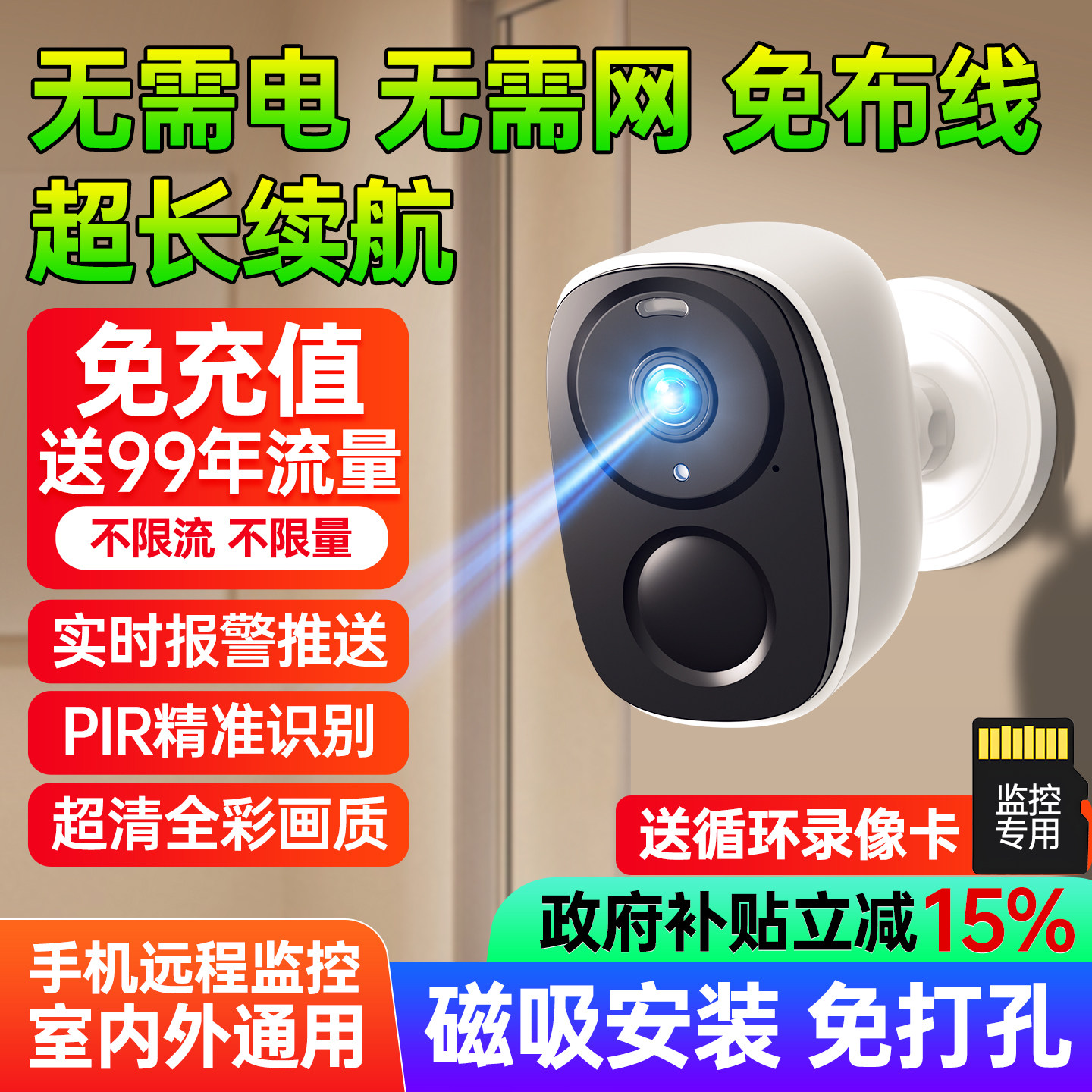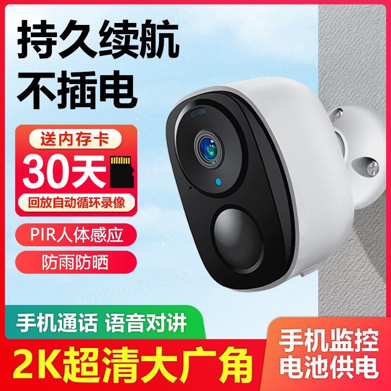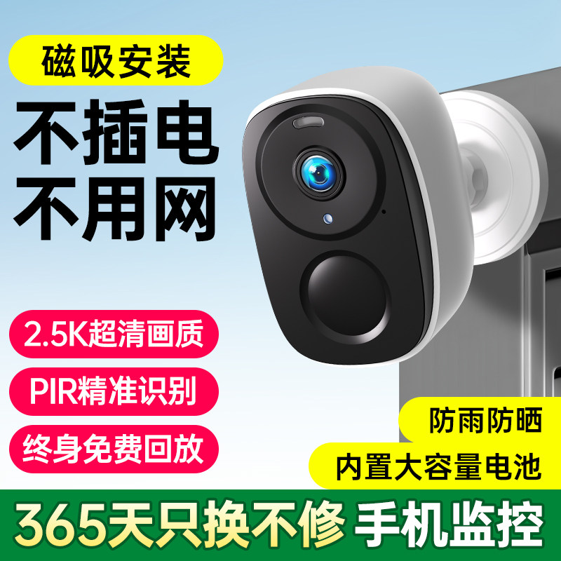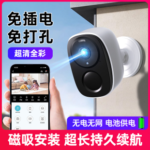 无线电池摄像头免插电门口智能监控360度全景4G家用手机远程摄影