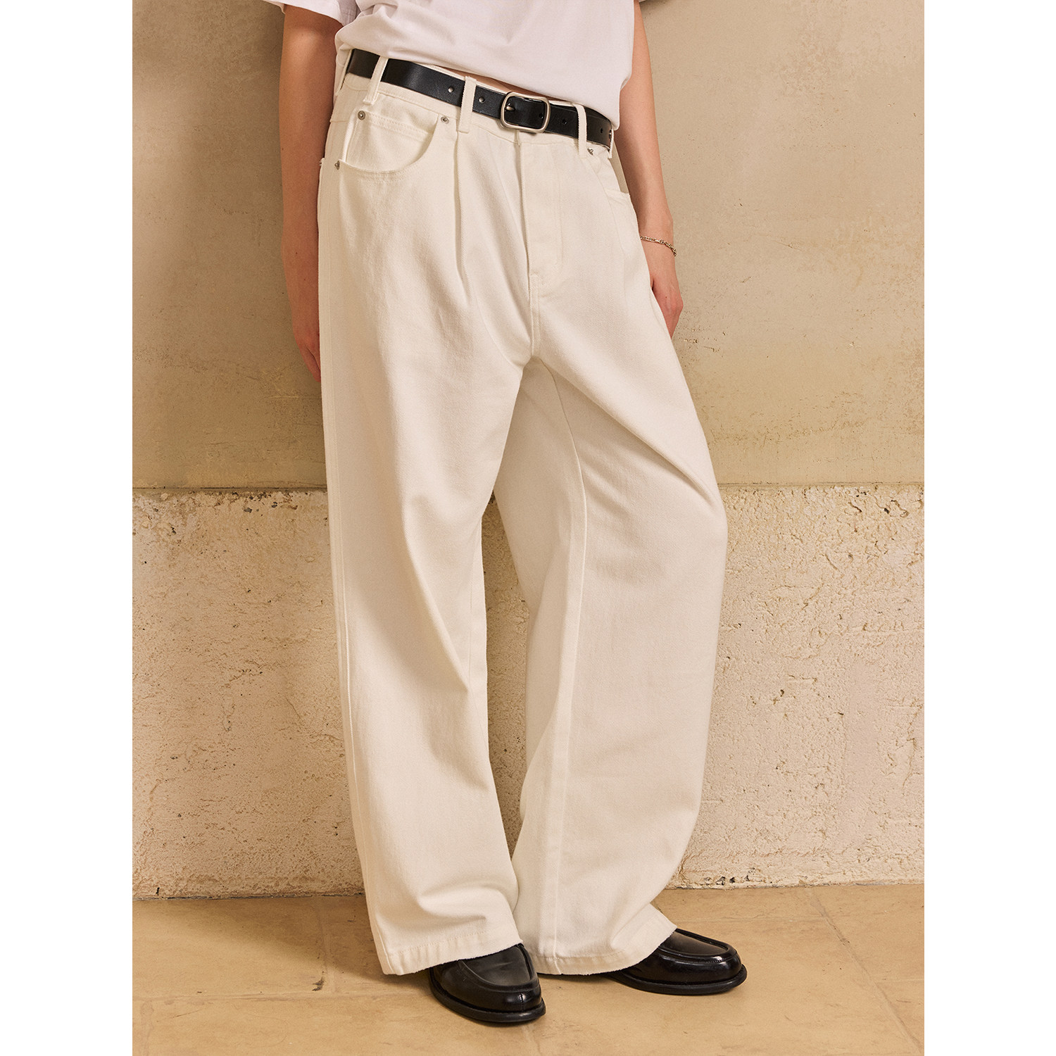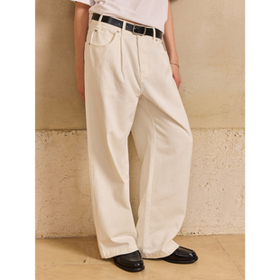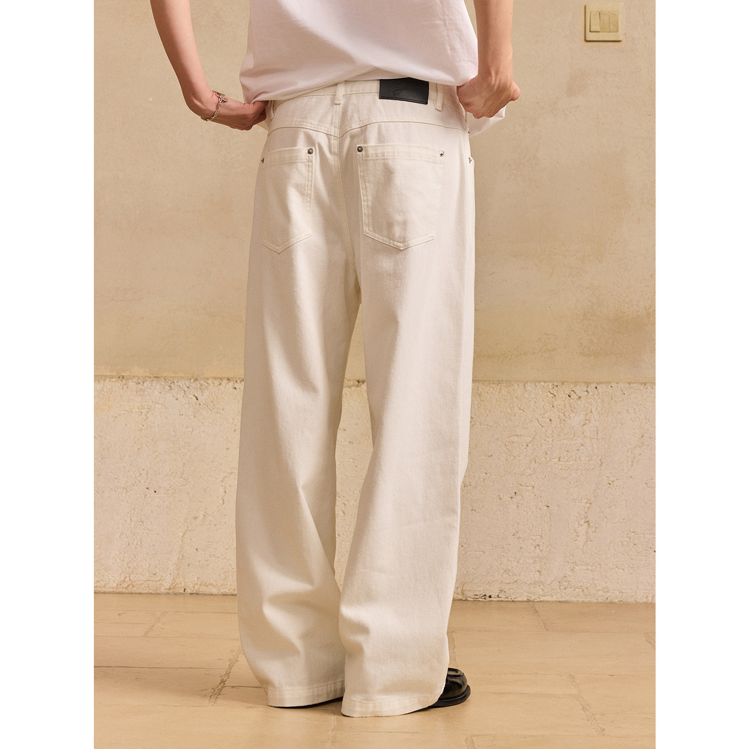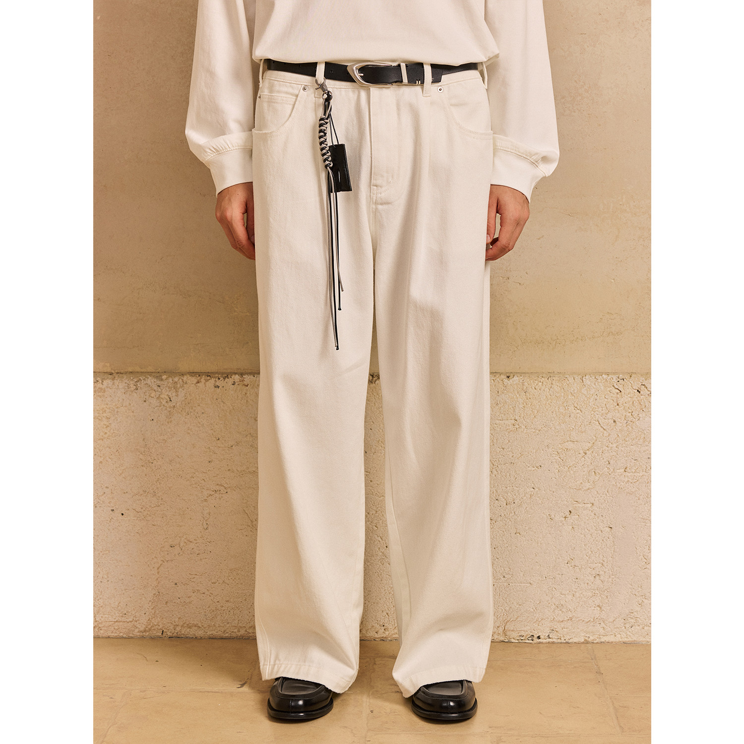 MADE 垂感直筒休闲牛仔长裤 25AW 腰头压印皮牌 极简风白牛