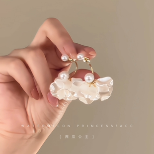 「白花私语」白色花朵珍珠耳环女法式 耳饰 高级感超仙适合夏天