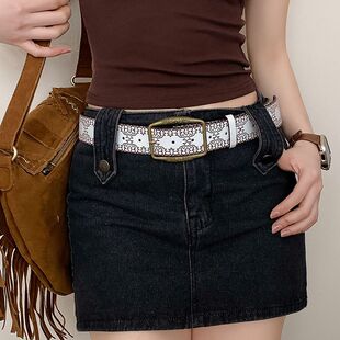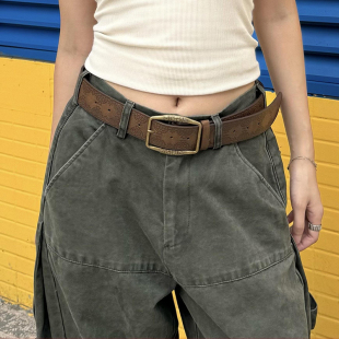 松紧编织 搭配新款 牛仔裤 压花复古腰带皮带棕色2025高级y2k美式