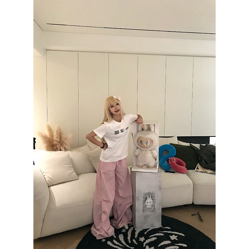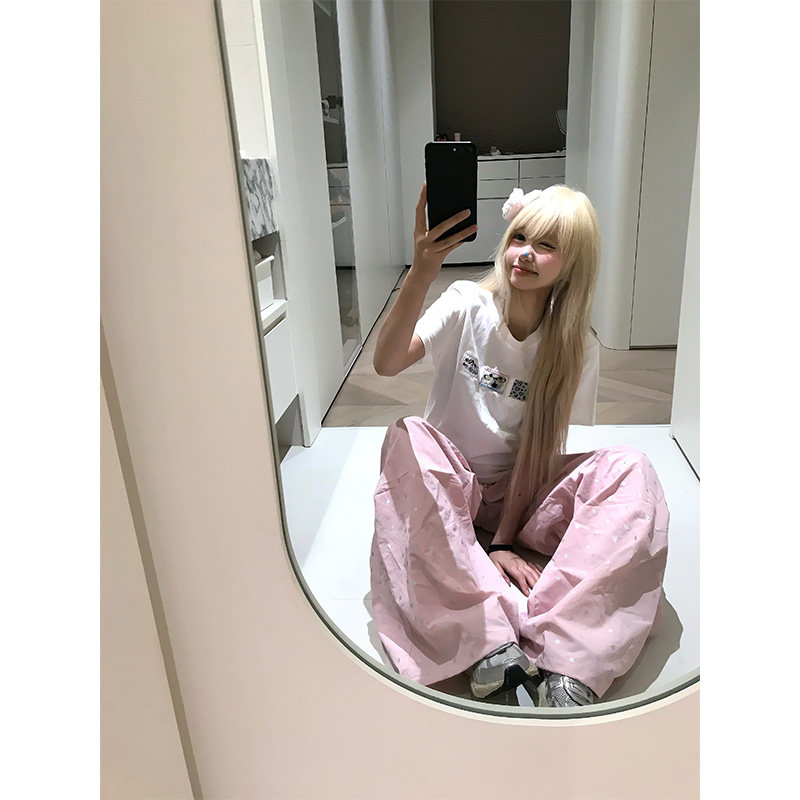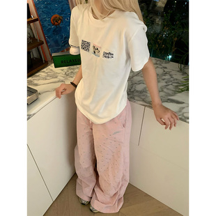 百搭慵懒打底衫 JMJ T恤男女夏季 复古趣味贴布绣正肩短袖 上衣 美式
