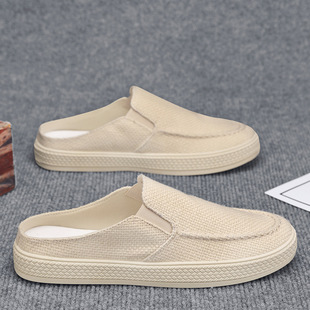 轻便软底工作老北京布鞋 透气休闲一脚蹬半拖亚麻男士 夏季 帆布男鞋