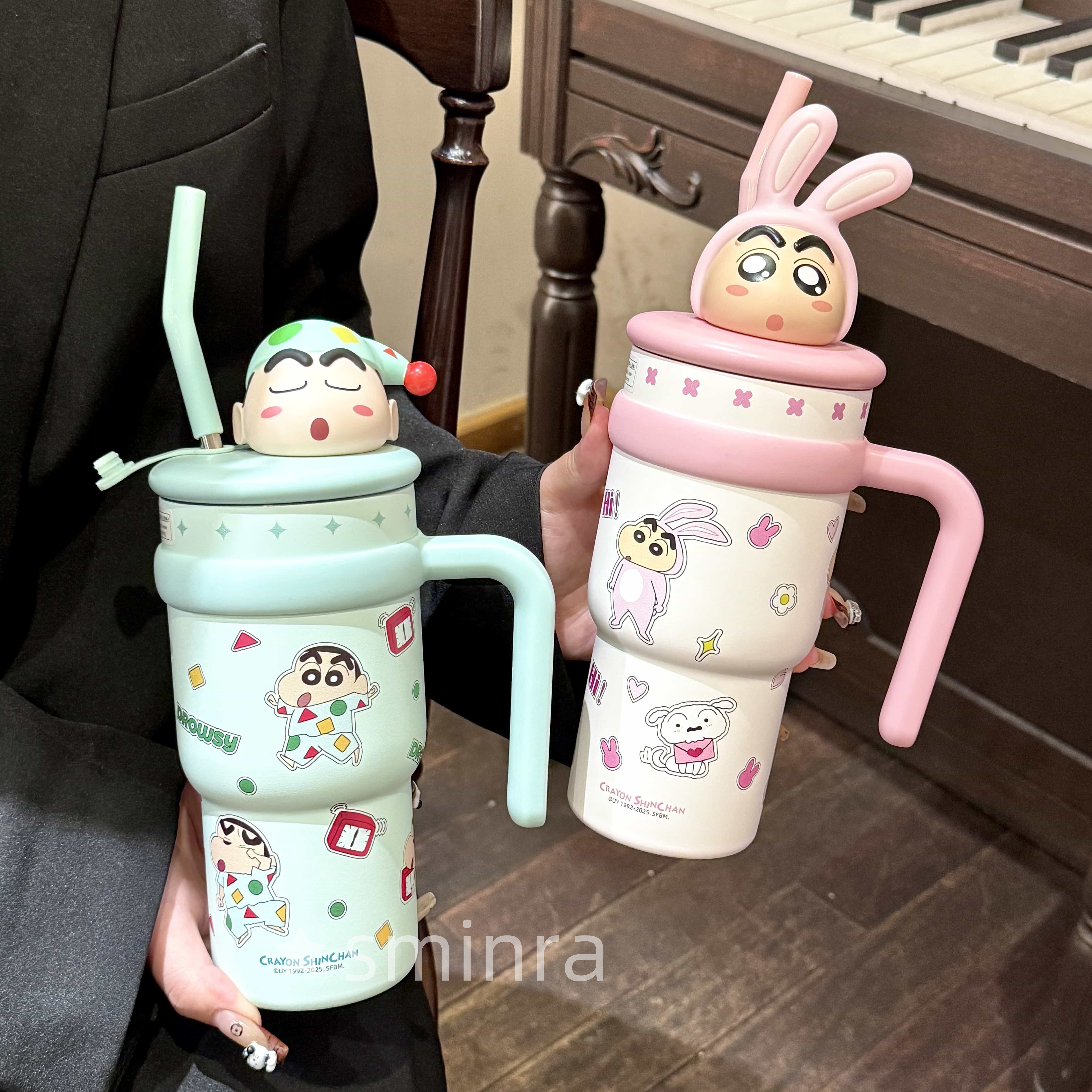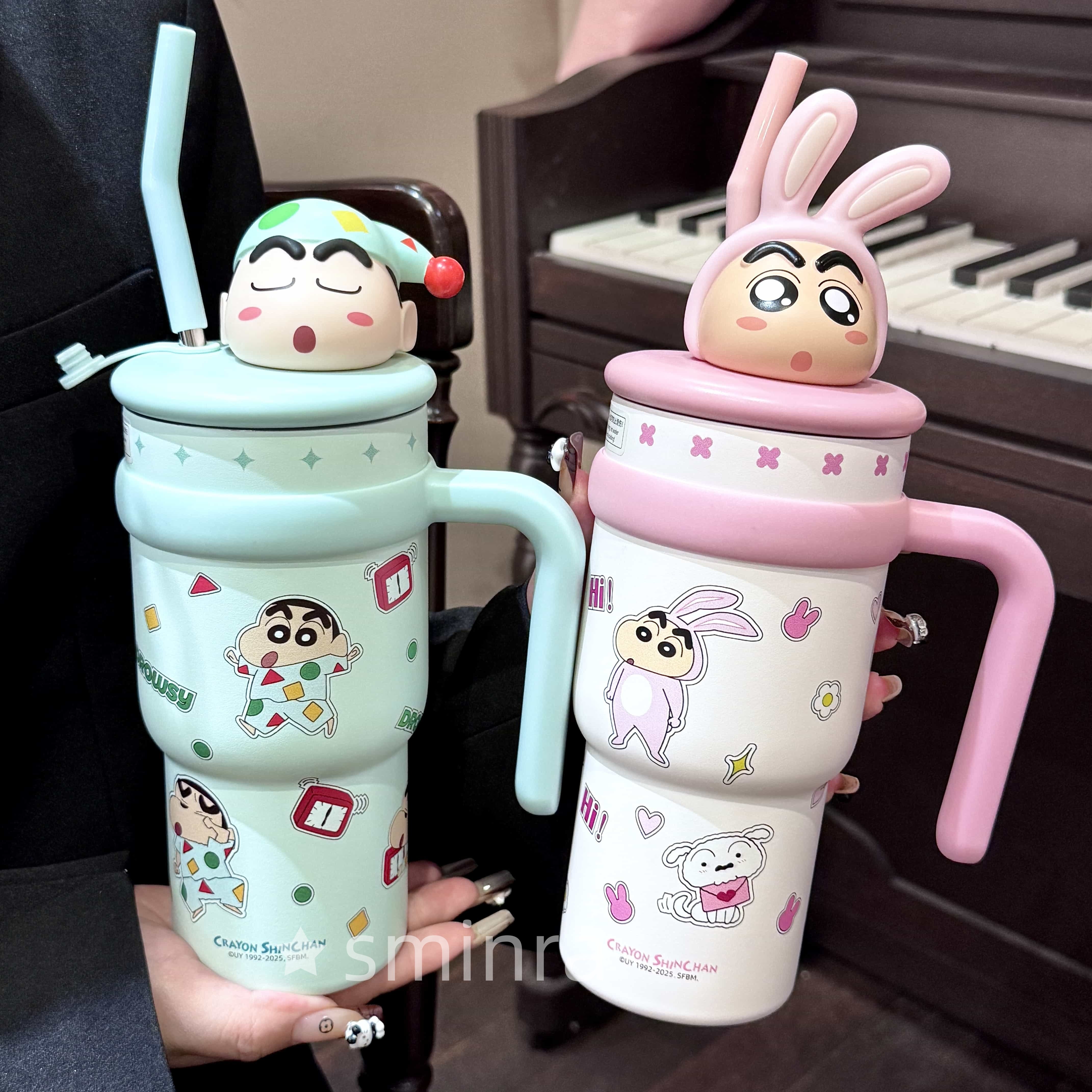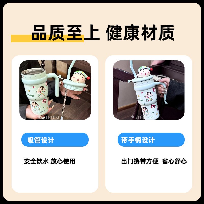 蜡笔小新杯子保温杯可爱学生女大容量水杯吸管保冷冰霸杯生日礼物
