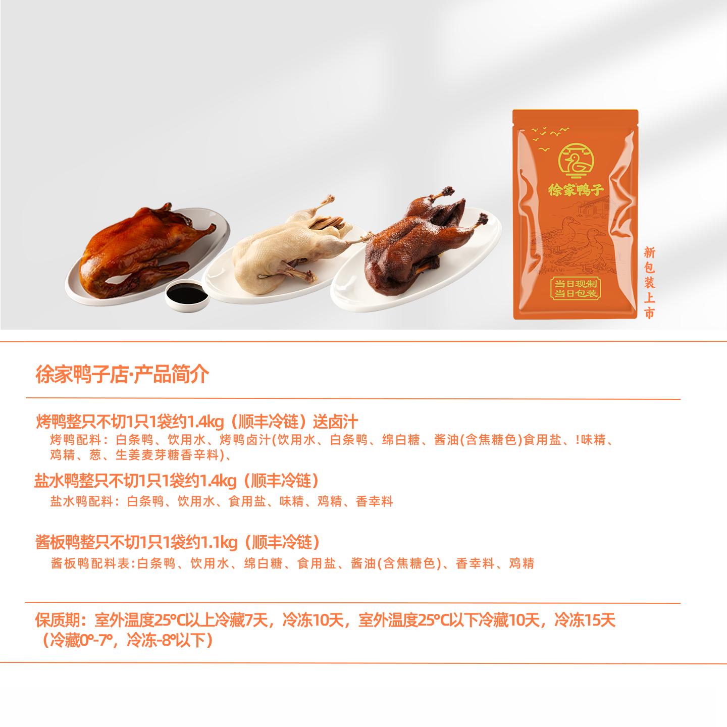 南京特产网红脆皮全鸭烤鸭卤味熟食1.4kg顺丰 徐家鸭子店爆款