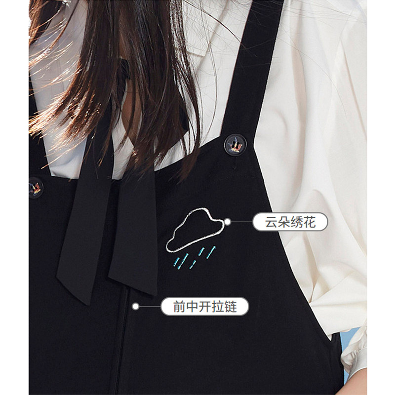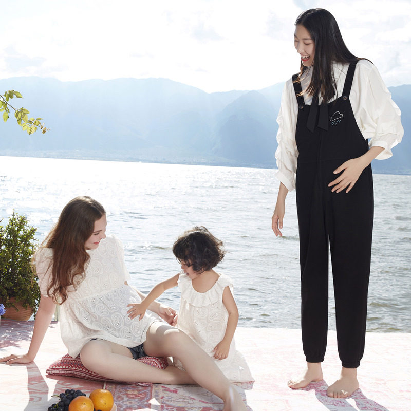 春装 不勒肚子刺绣阔腿裤 春夏外穿小个子牛仔裤 MASANON孕妇背带裤