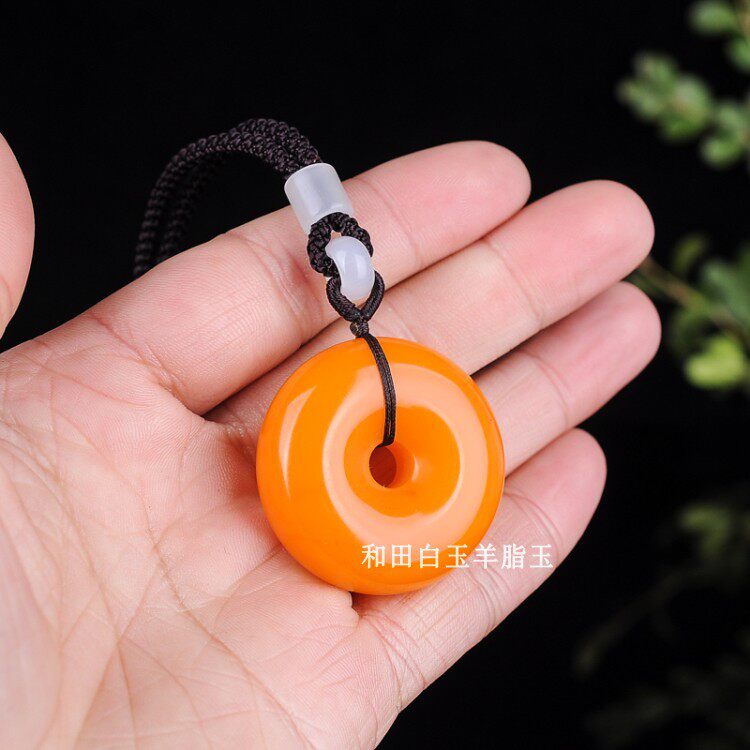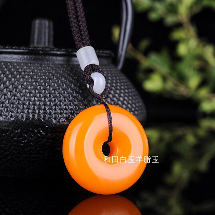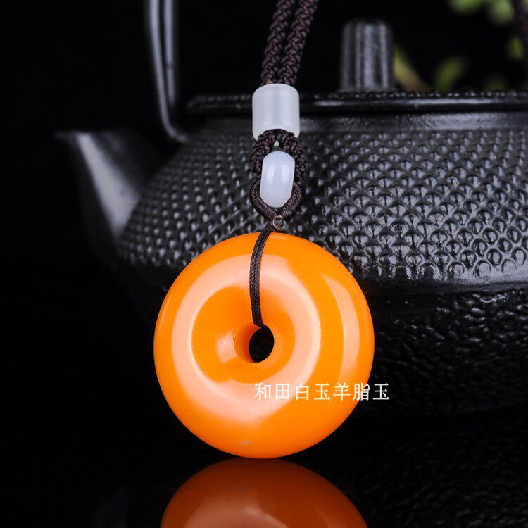 情侣款 天然新疆和田玉黄玉籽料平安扣吊坠项链挂坠毛衣链罗汉眼