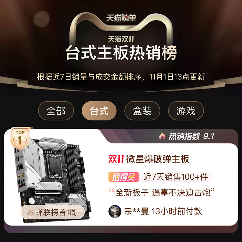 微星H610 B760迫击炮爆破弹搭光威海姆达尔热销电脑主板内存套装