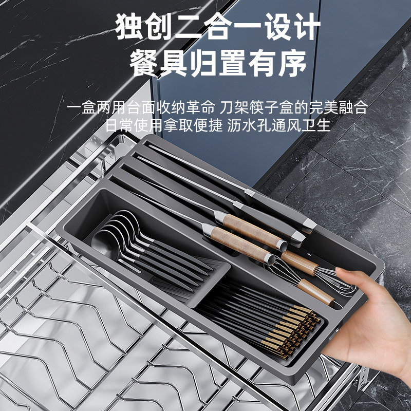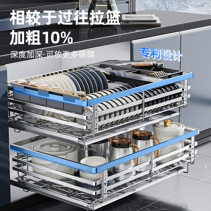 四季 碗柜碗碟收纳碟架碗篮 沐歌拉篮厨房橱柜304不锈钢双层抽屉式