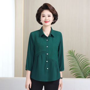 新款 洋气上衣套装 衬衫 t恤40岁50女士衣服中年女夏装 中袖 妈妈春装