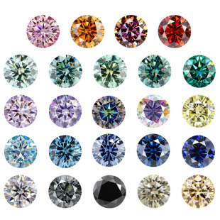 正品 合成碳硅石圆钻尖底1克拉主石戒面裸石 圆形彩色莫桑石组合
