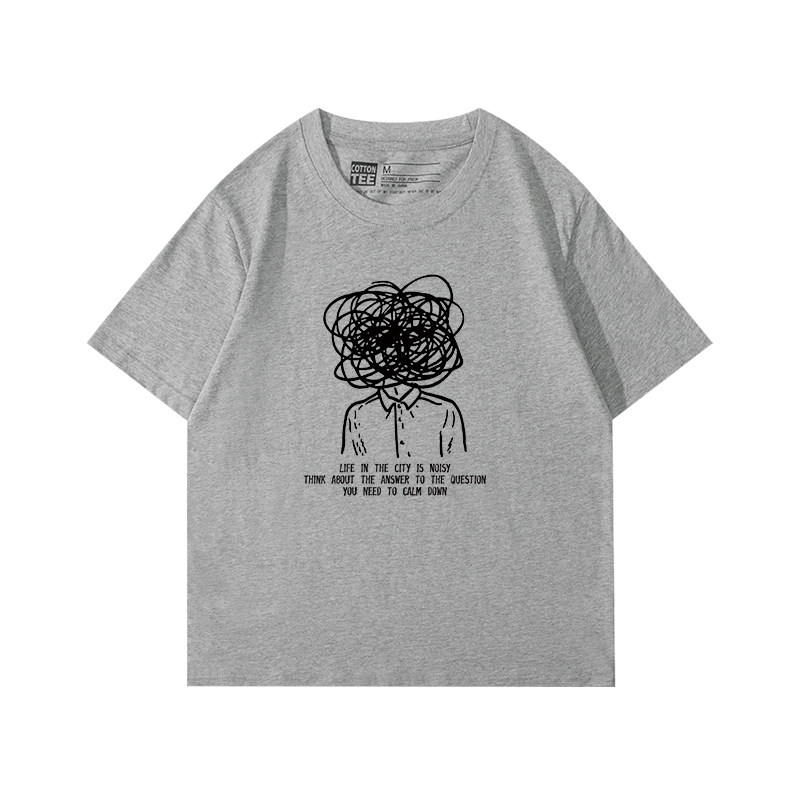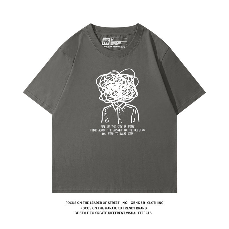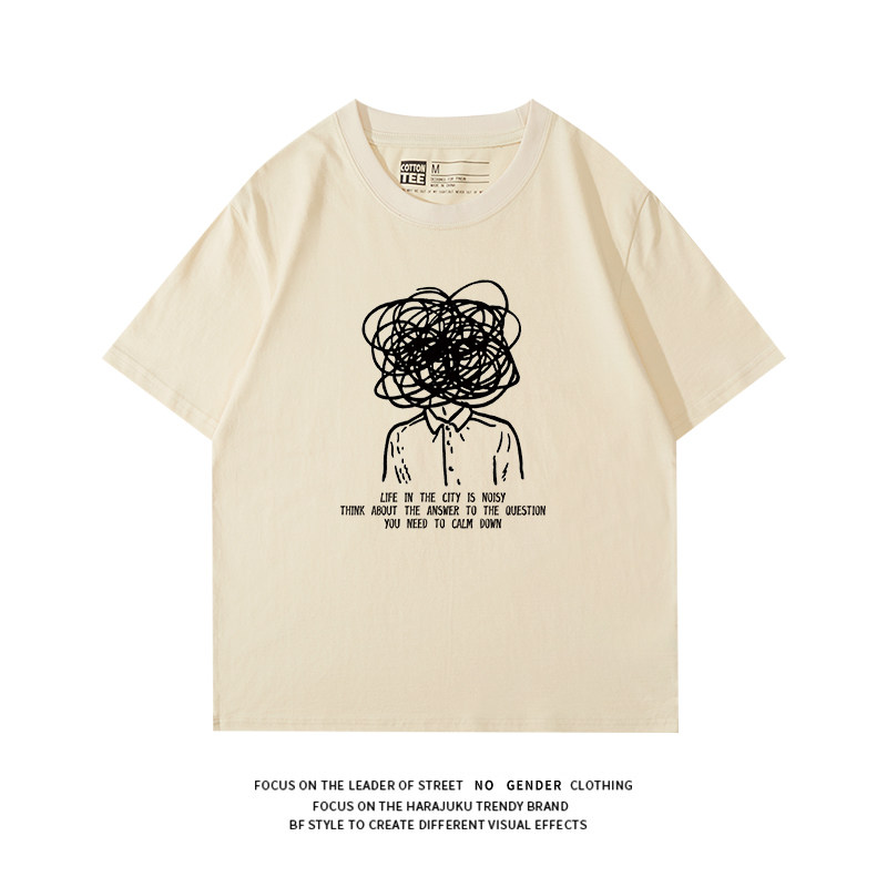 t恤男宽松正肩半袖 短袖 上衣夏 线条头简约印花白色情侣装 创意个性