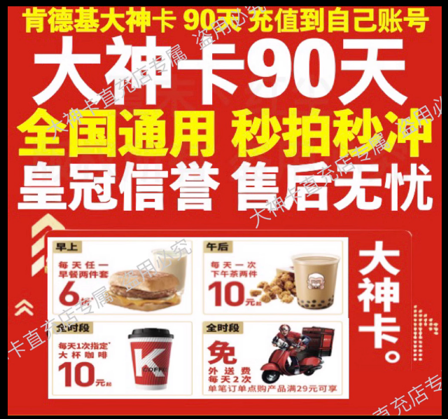 肯德基大神卡90天肯德基季 卡肯德基大神卡免配送费下午茶早餐咖啡