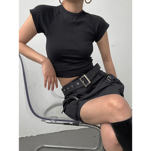 正肩t恤女夏欧美辣妹性感小众打底衫 短袖 修身 AcupStudio江右上