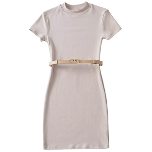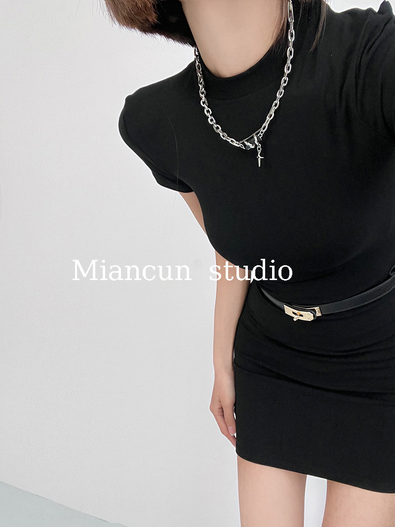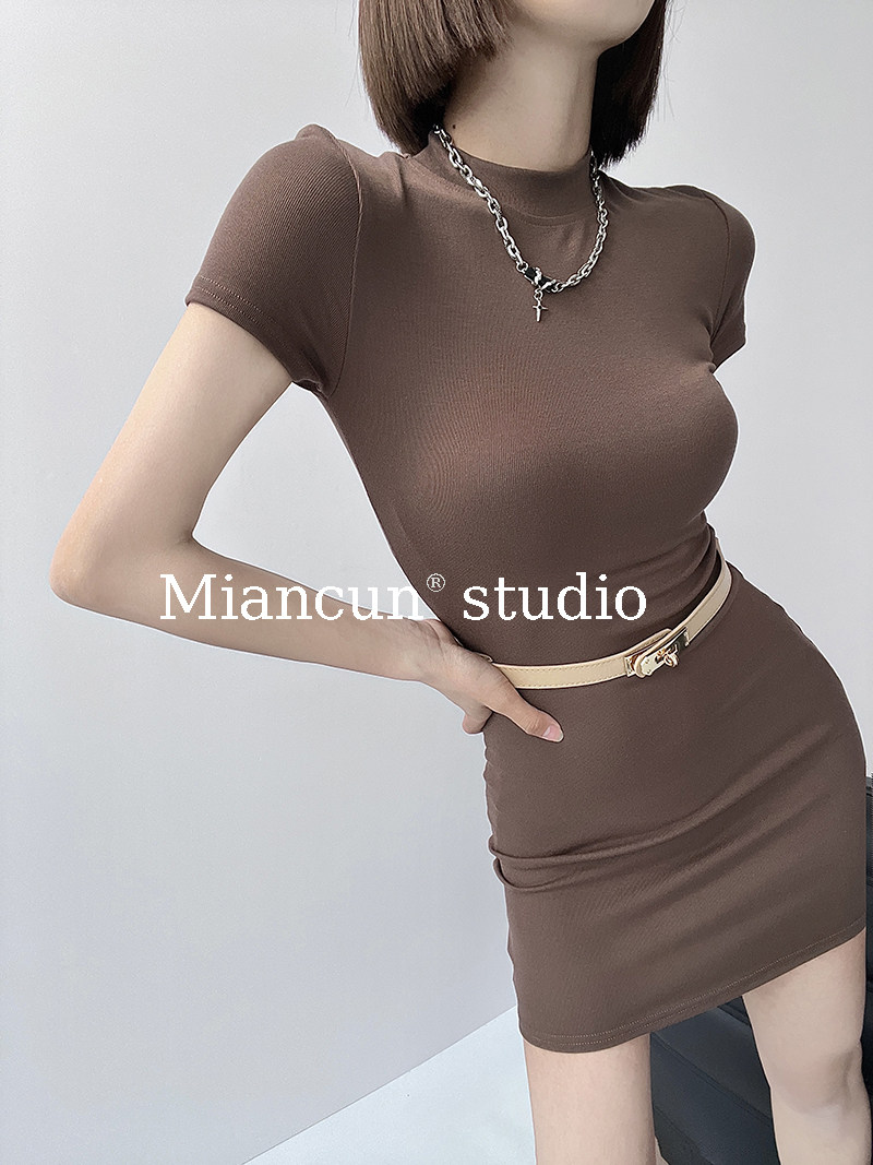 酷飒氛围感高领短袖 显白打底裙 紧身连衣裙女性感显瘦包臀短裙修身