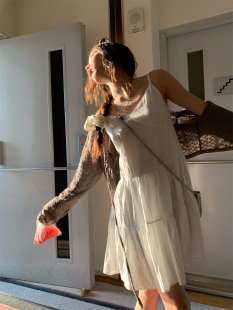 荒荒家初恋吊带连衣裙2025夏季 温柔风小众减龄褶皱a字短裙ins 新款