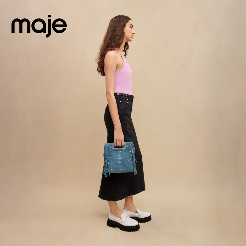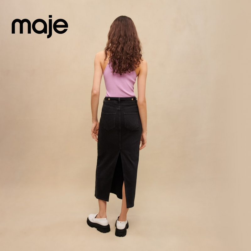 牛仔半裙 休闲简约棉质后侧开衩设计直筒版 Maje Outlets秋冬女装