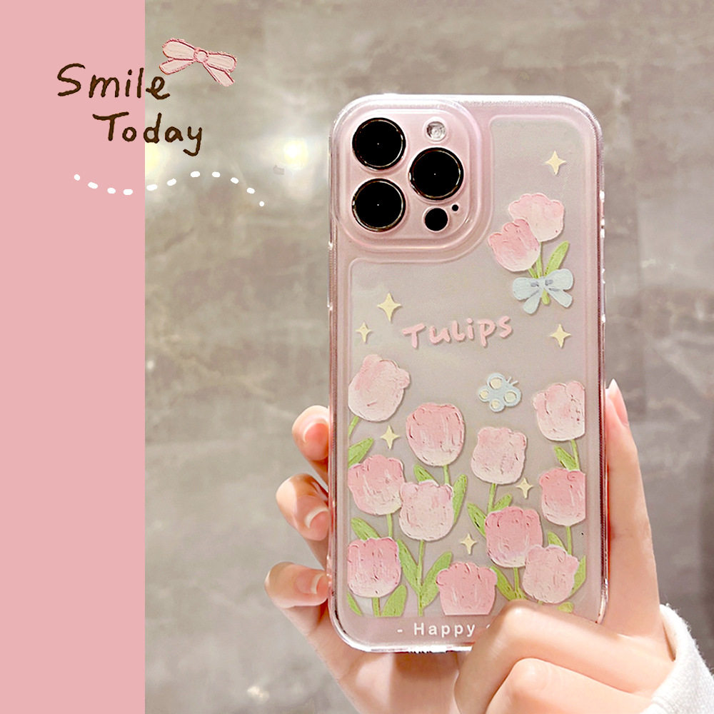 小清新郁金香适用苹果17ProMax手机壳iphone16透明12防摔15女14plus全包13文艺风17硅胶xs保护套15pro韩风11