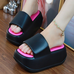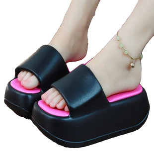 凉拖鞋 女松糕外穿度假海边凉拖 女夏外穿厚底高跟防滑一字沙滩拖鞋