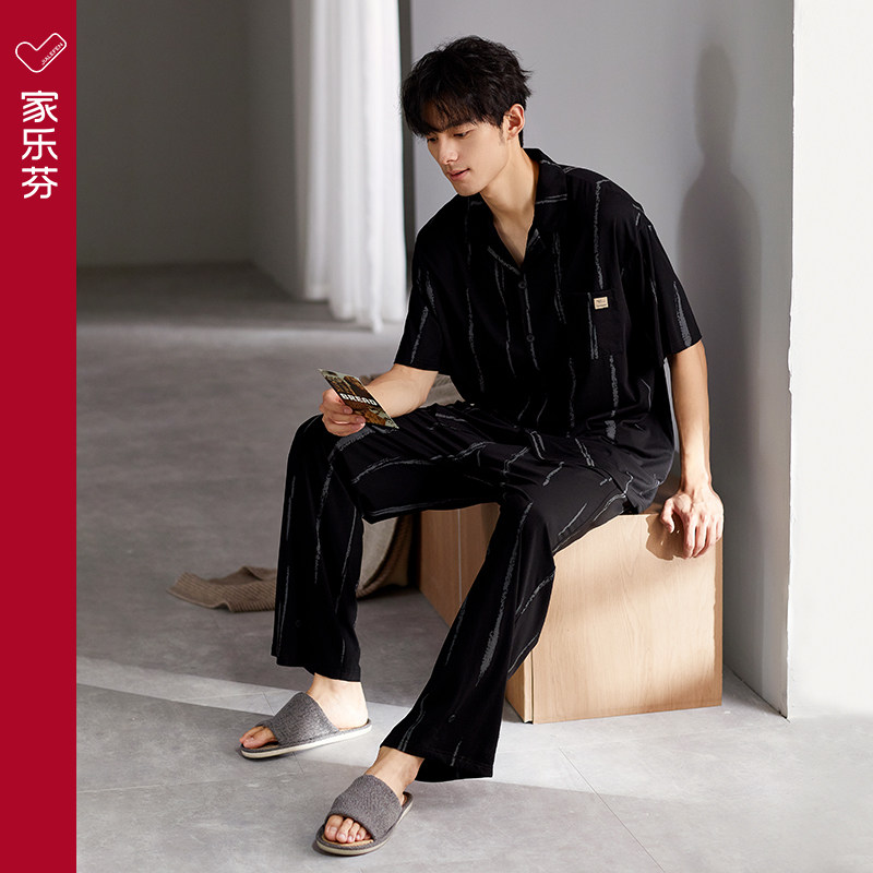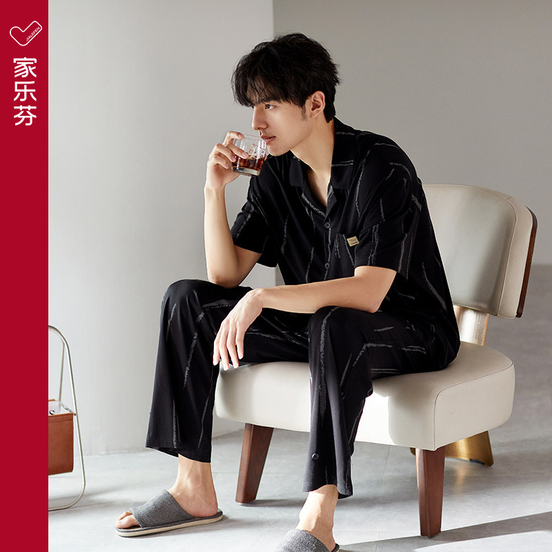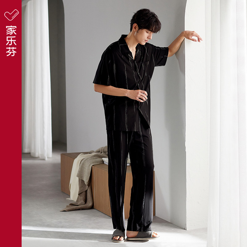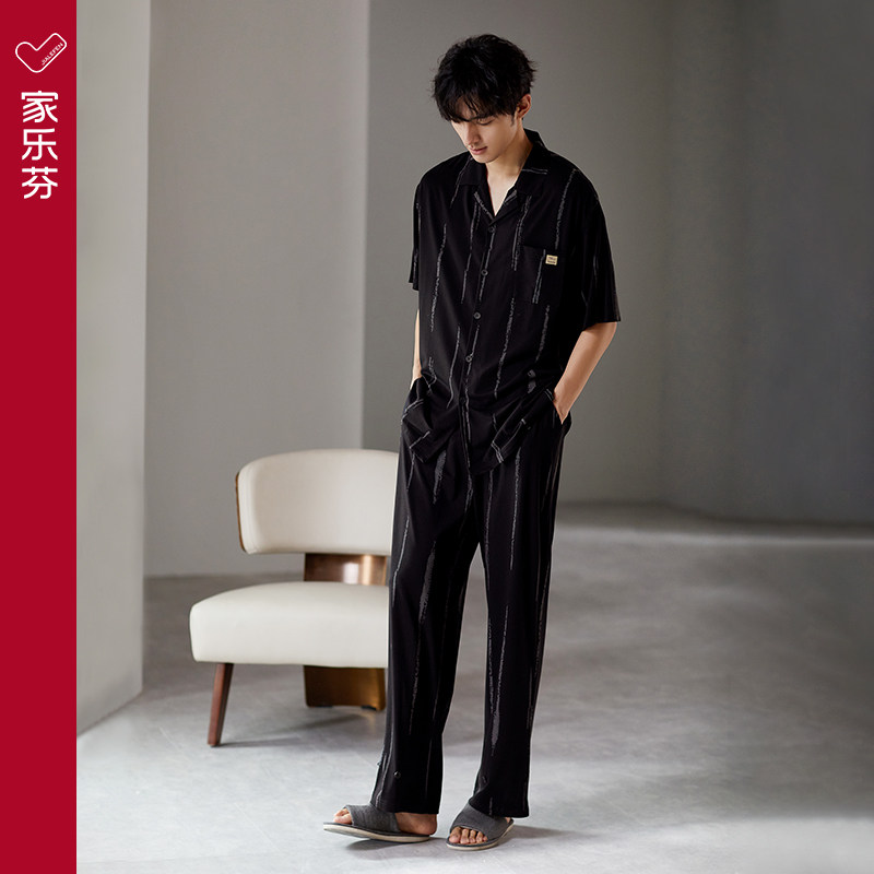 长裤 莫代尔棉短袖 家居服男款 夏天夏款 睡衣男士 条纹可外穿套装 夏季