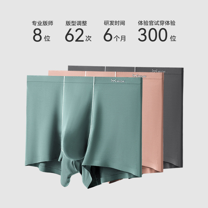 冰丝透气四角短裤 3件 莫代尔大码 平角内裤 男生 蕉内银皮500E男士