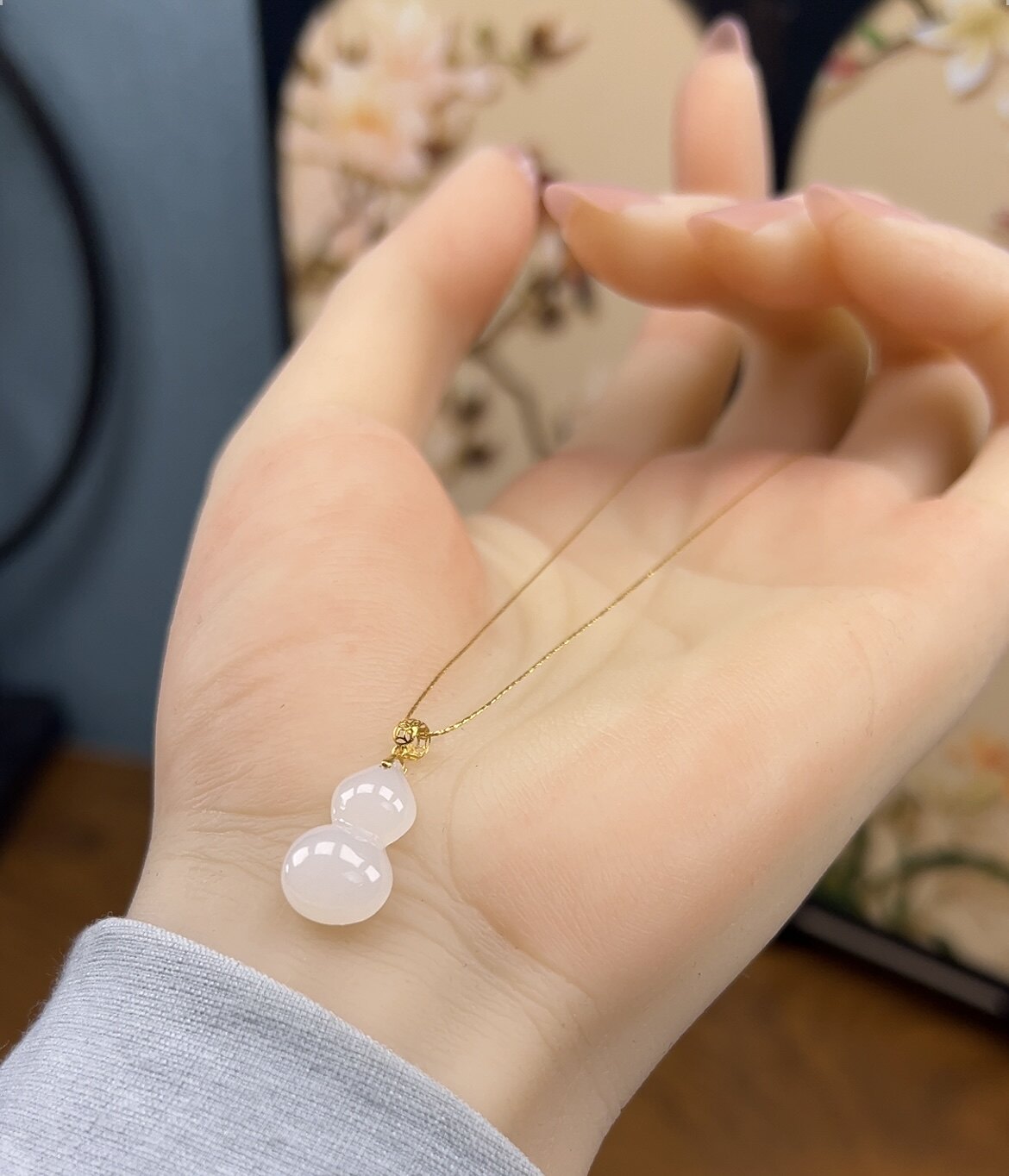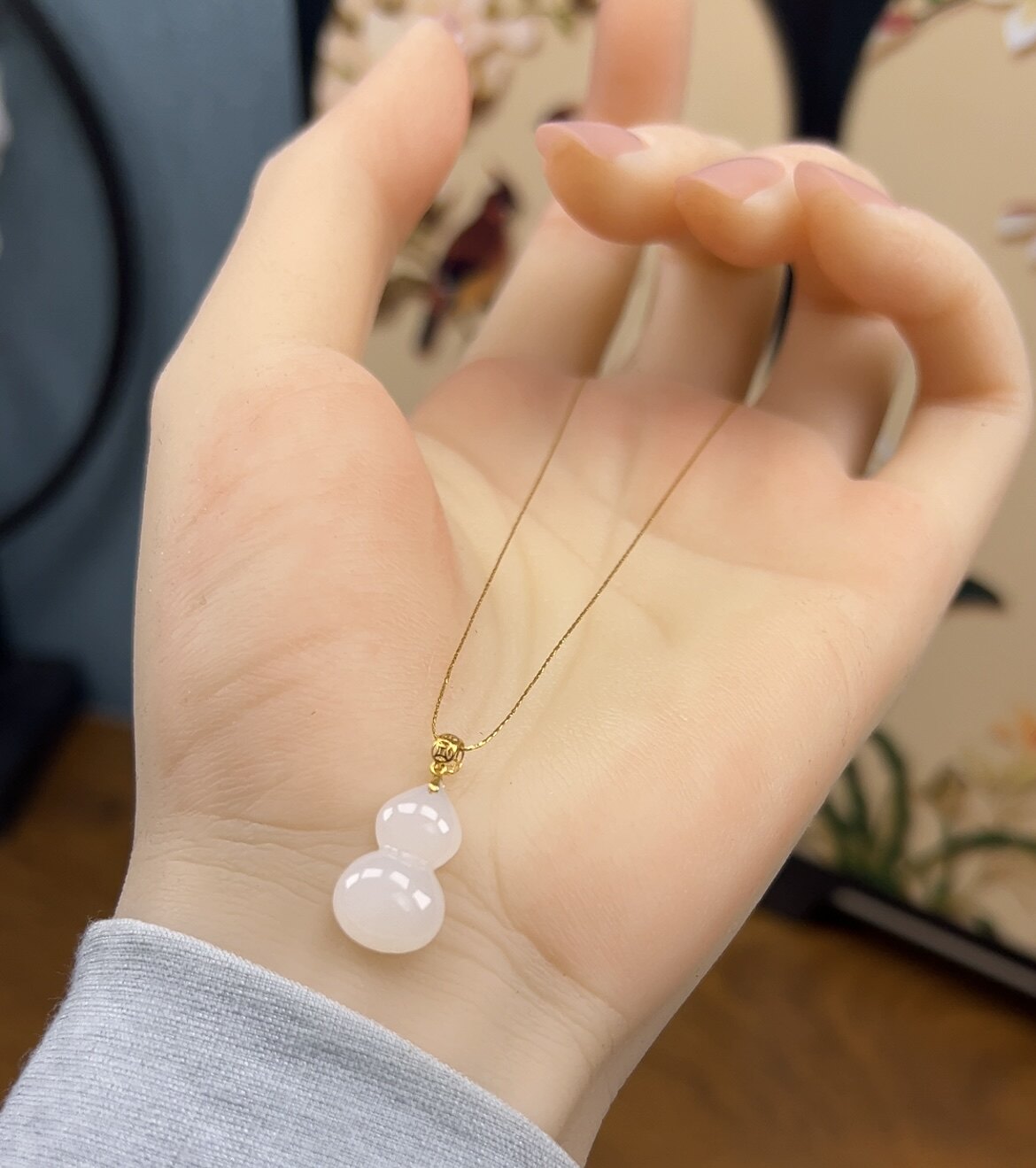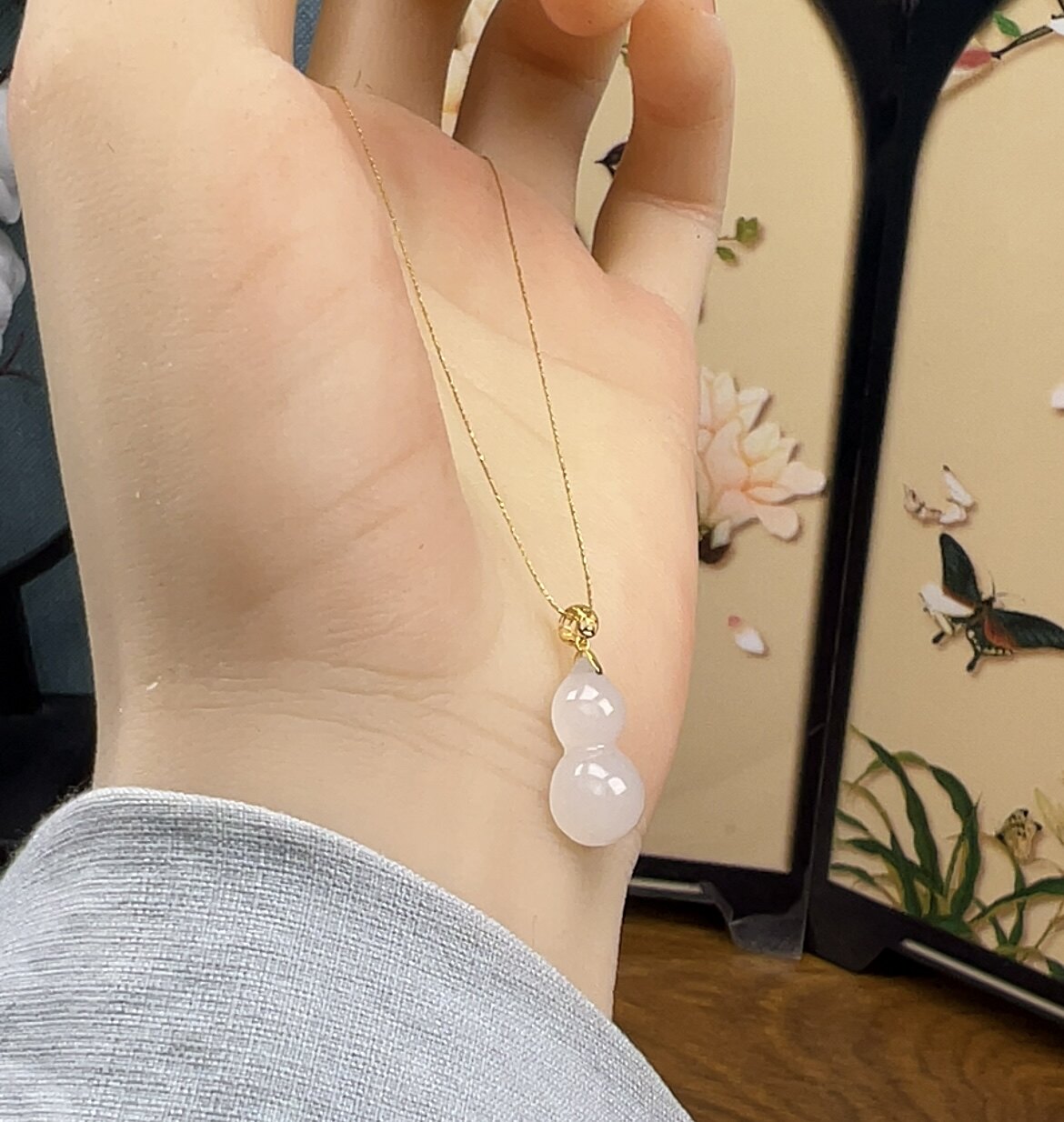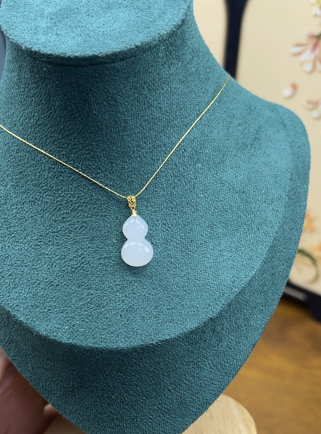 新疆直发和田玉羊脂白玉葫芦项链18k金扣头锁骨链天然玉石带证书