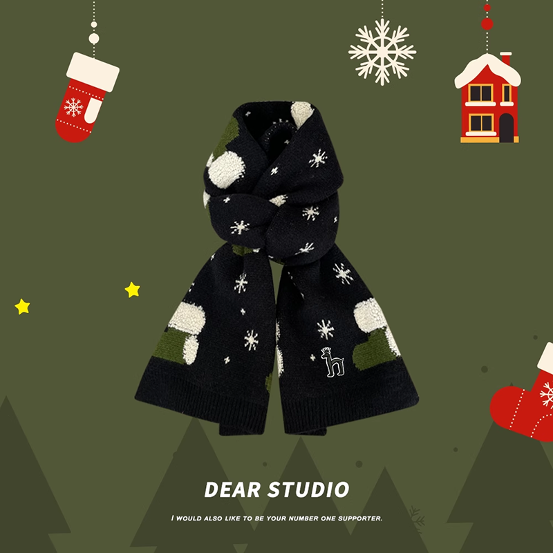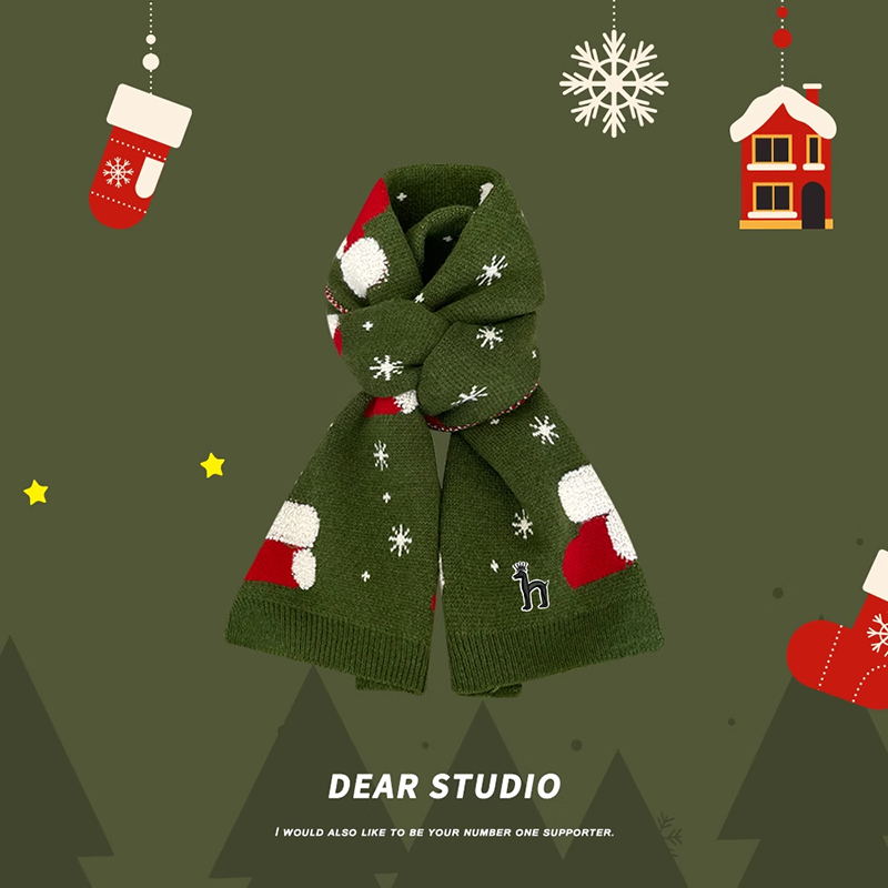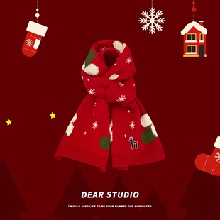 红色圣诞树针织围巾圣诞毛线围脖款 新款 秋冬季 哈吉斯船长男女同款