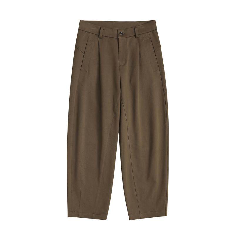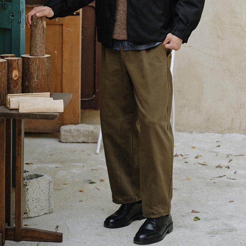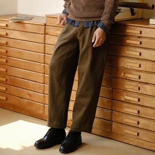 宽松立裁保暖挺括品质百搭长裤 收留原创男士 秋冬加厚咖色休闲裤