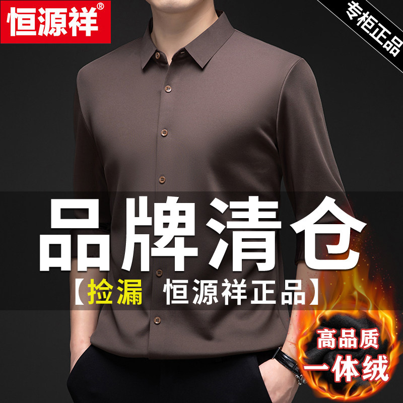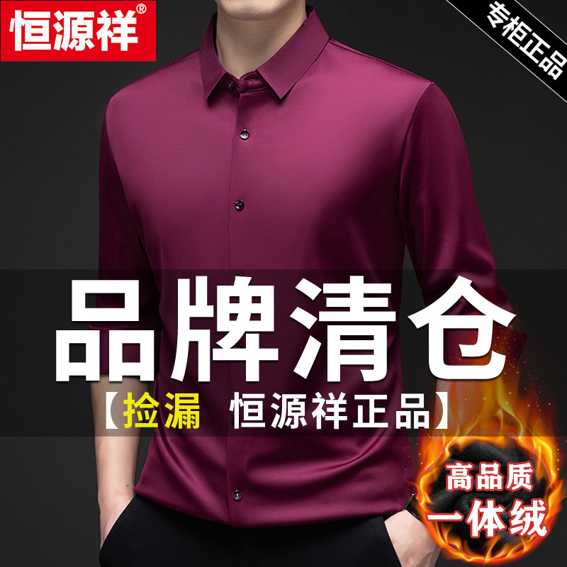 新款 恒源祥商务长袖 秋冬季 男士 高级感加绒无痕免烫衬衣男 保暖衬衫