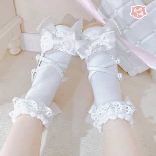 绵羊泡芙Lolita漆皮pu蝴蝶结松糕鞋 奶油缎缎 厚底鞋 现货