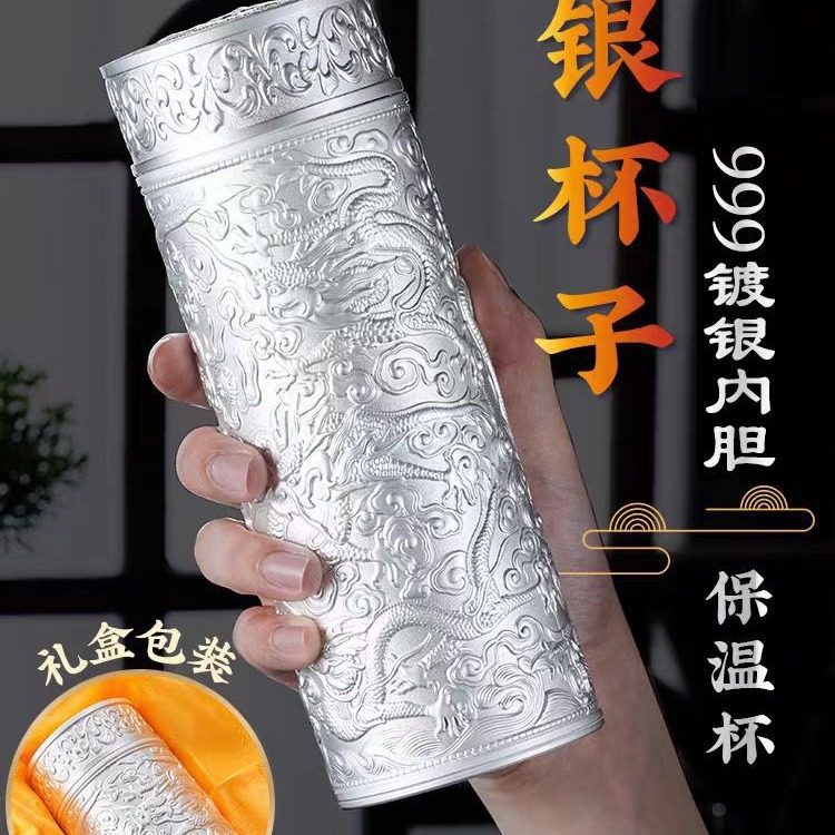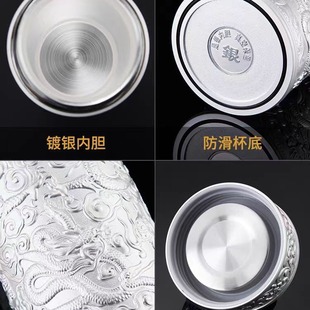 银杯子999纯银内胆礼品杯足银茶杯过滤九龙银水杯正品 高档保温杯