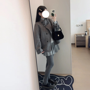毛呢外套立领小个子双排扣韩版 绿色短款 宽松呢子大衣 新款 女冬季