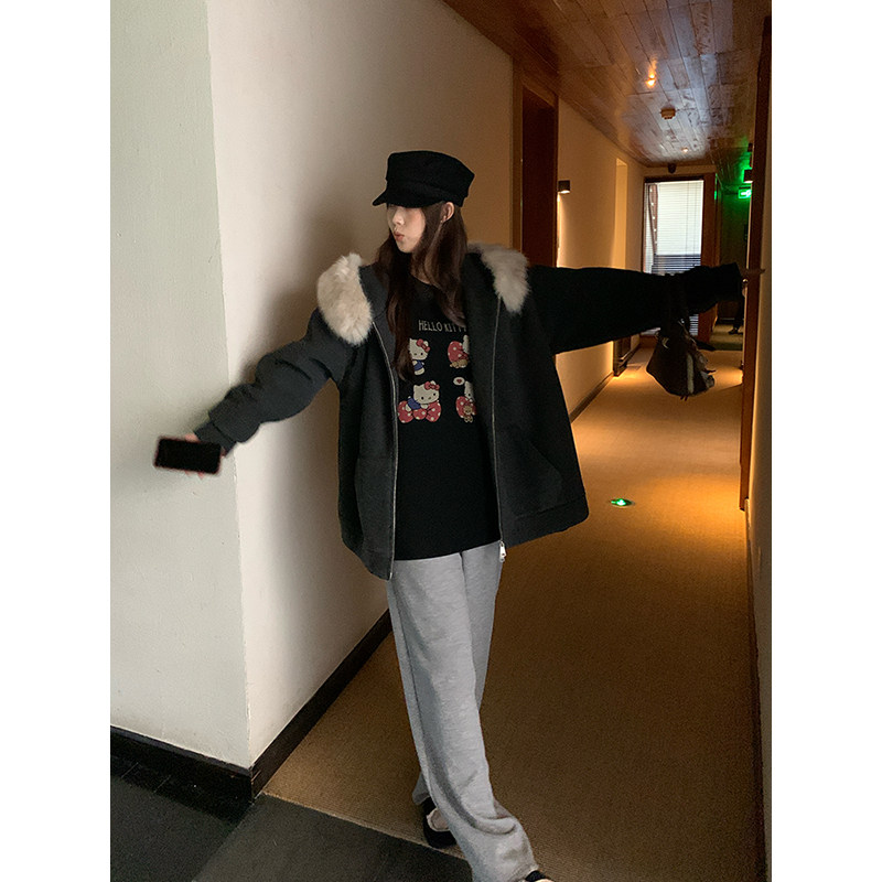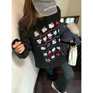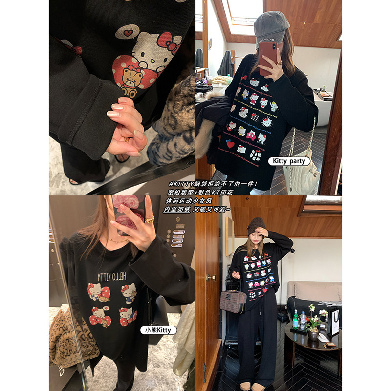 卡通印花休闲内搭上衣胖mm洋气加绒黑色T恤女 新款 NAZ那子大码 冬季