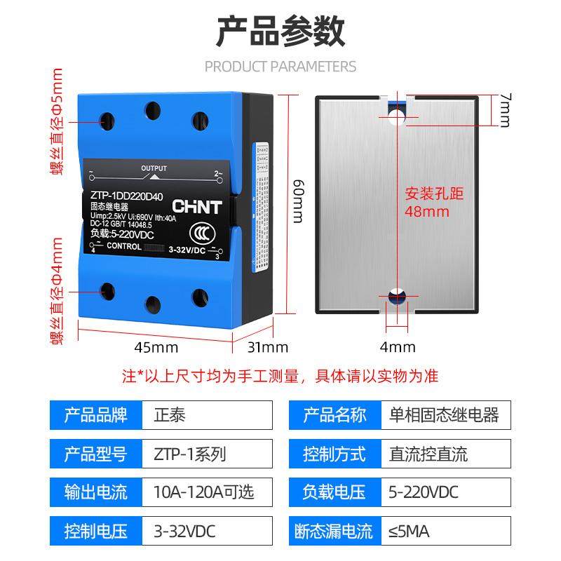 10A 40A 正泰小型固态继电器24v单相ZTP 1DD220D25直流控直流SSR
