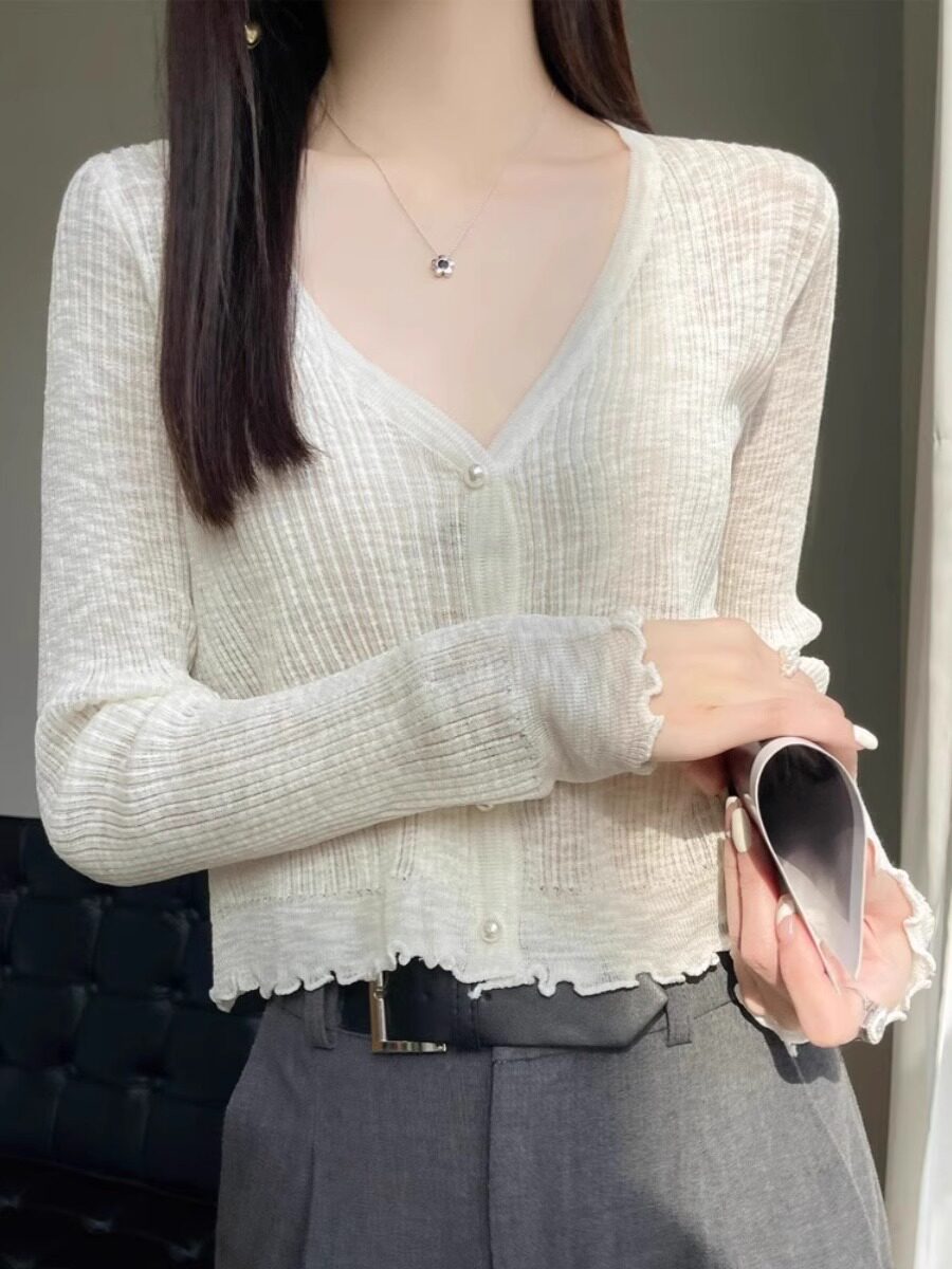 女薄款 上衣小罩衫 外套披肩短款 夏季 外搭配裙子防晒衫 冰丝针织开衫