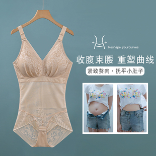 v领束身美体内衣女 收腹束腰带胸垫一体式 吊带连体塑身衣夏季 薄款