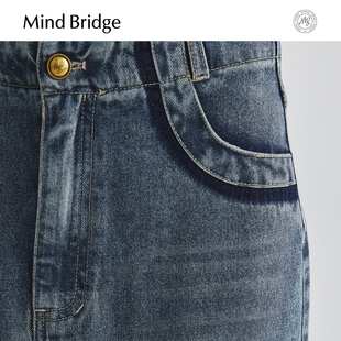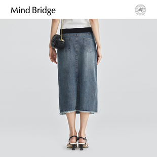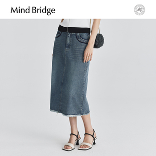 复古高腰牛仔裙女士流苏中长裙 直筒半身裙时尚 MindBridge夏季