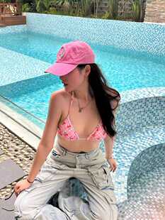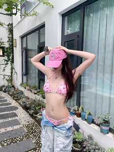 樱桃布丁粉色比基尼小可爱度假泳衣绑带白瘦幼风泳装 比基尼女新品