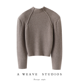 宽松 女半高领纯羊绒毛衣针织衫 复古廓形垫肩造型 加厚纯山羊绒衫