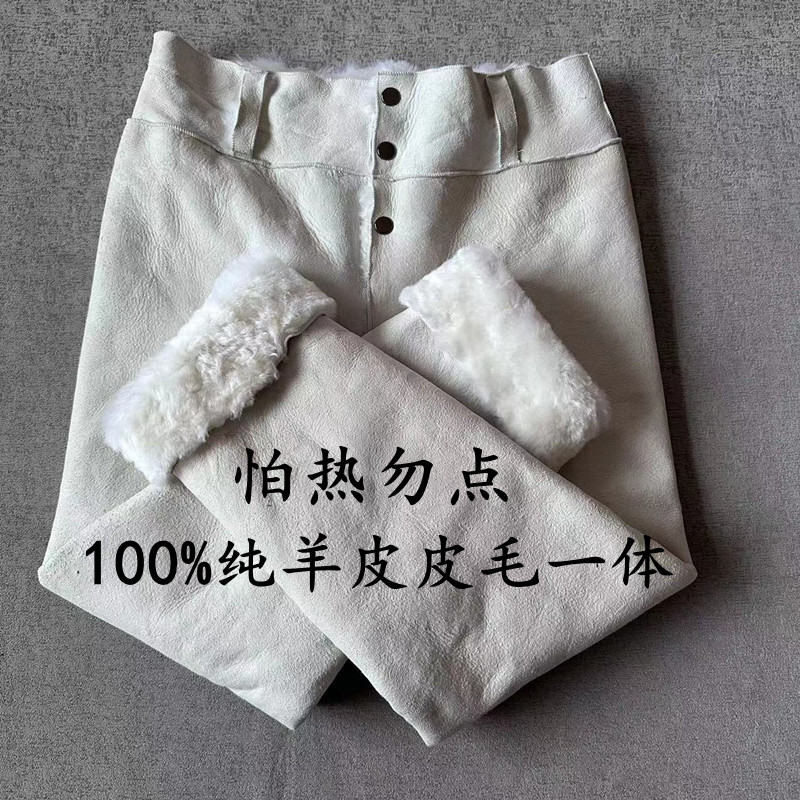羊剪绒加厚保暖防寒羊毛裤 冬季 整张羊皮裤 纯羊皮皮毛一体皮裤 新款