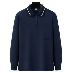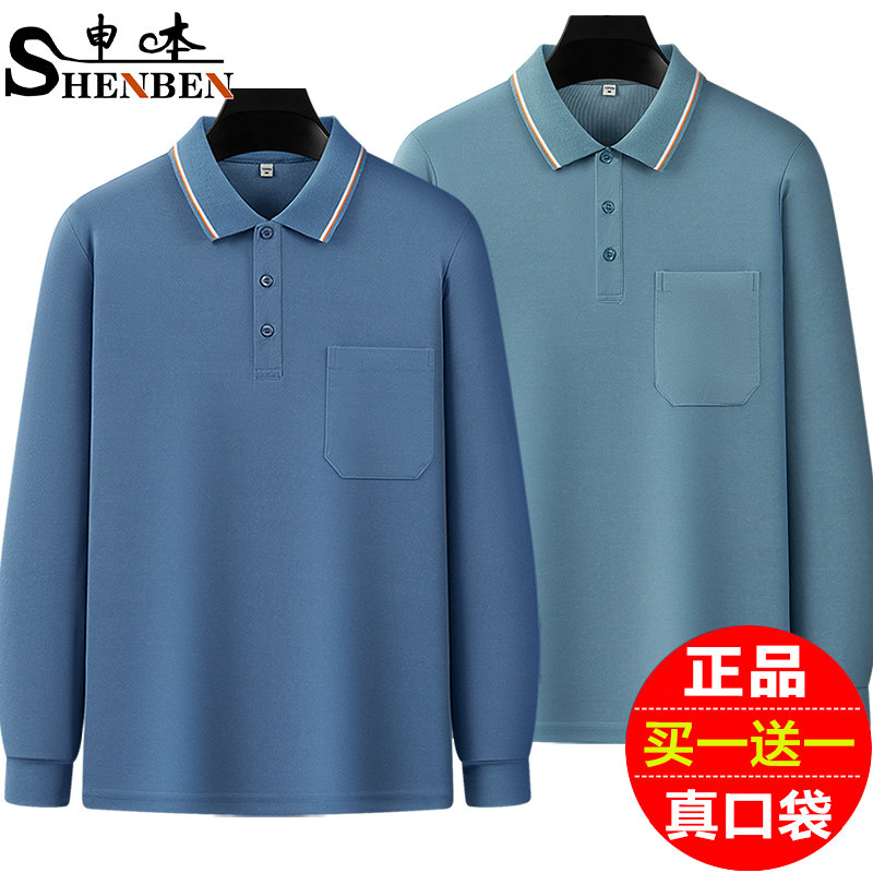 上衣翻领口袋中年打底Polo衫 申本纯色男士 爸爸装 t恤休闲大码 长袖