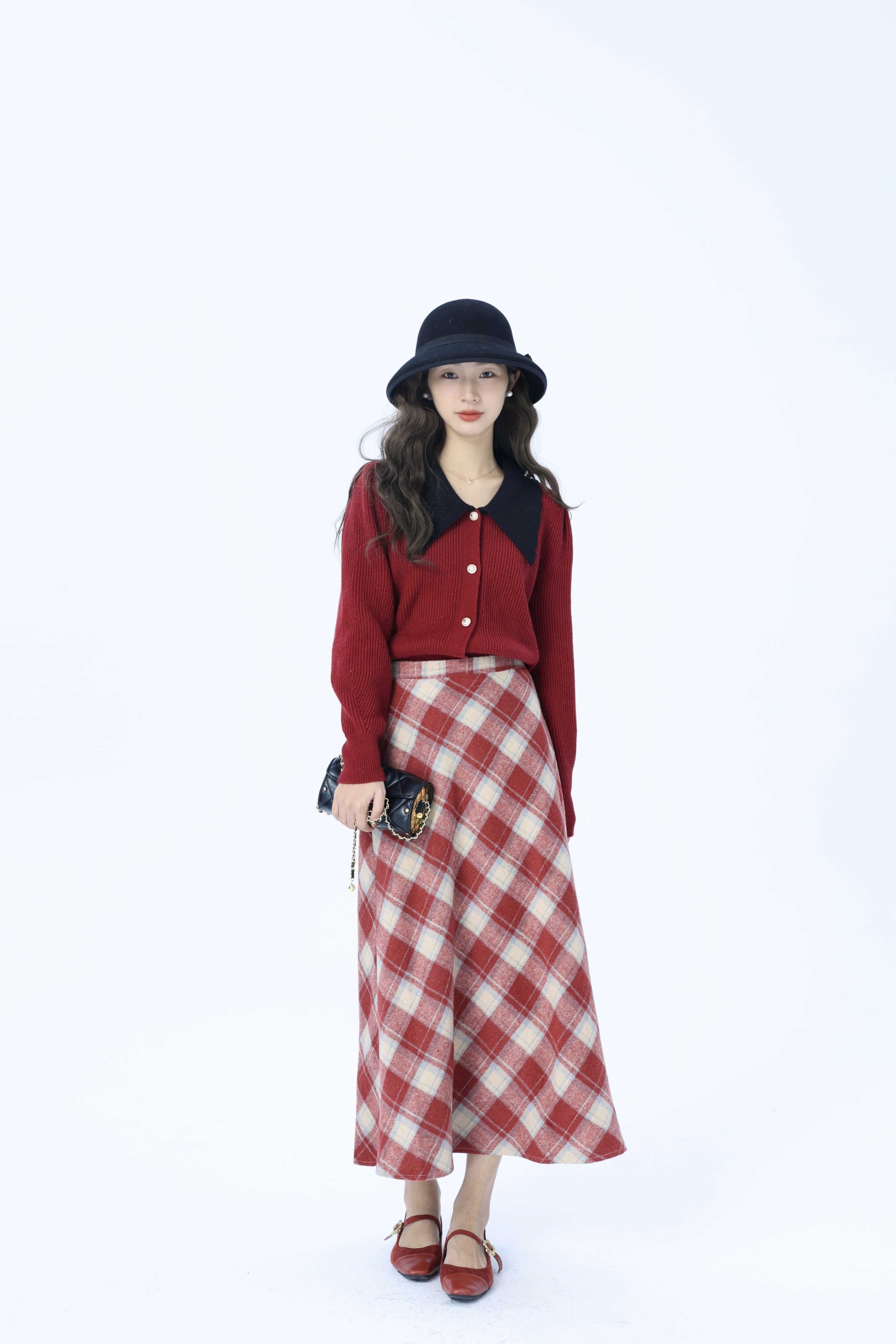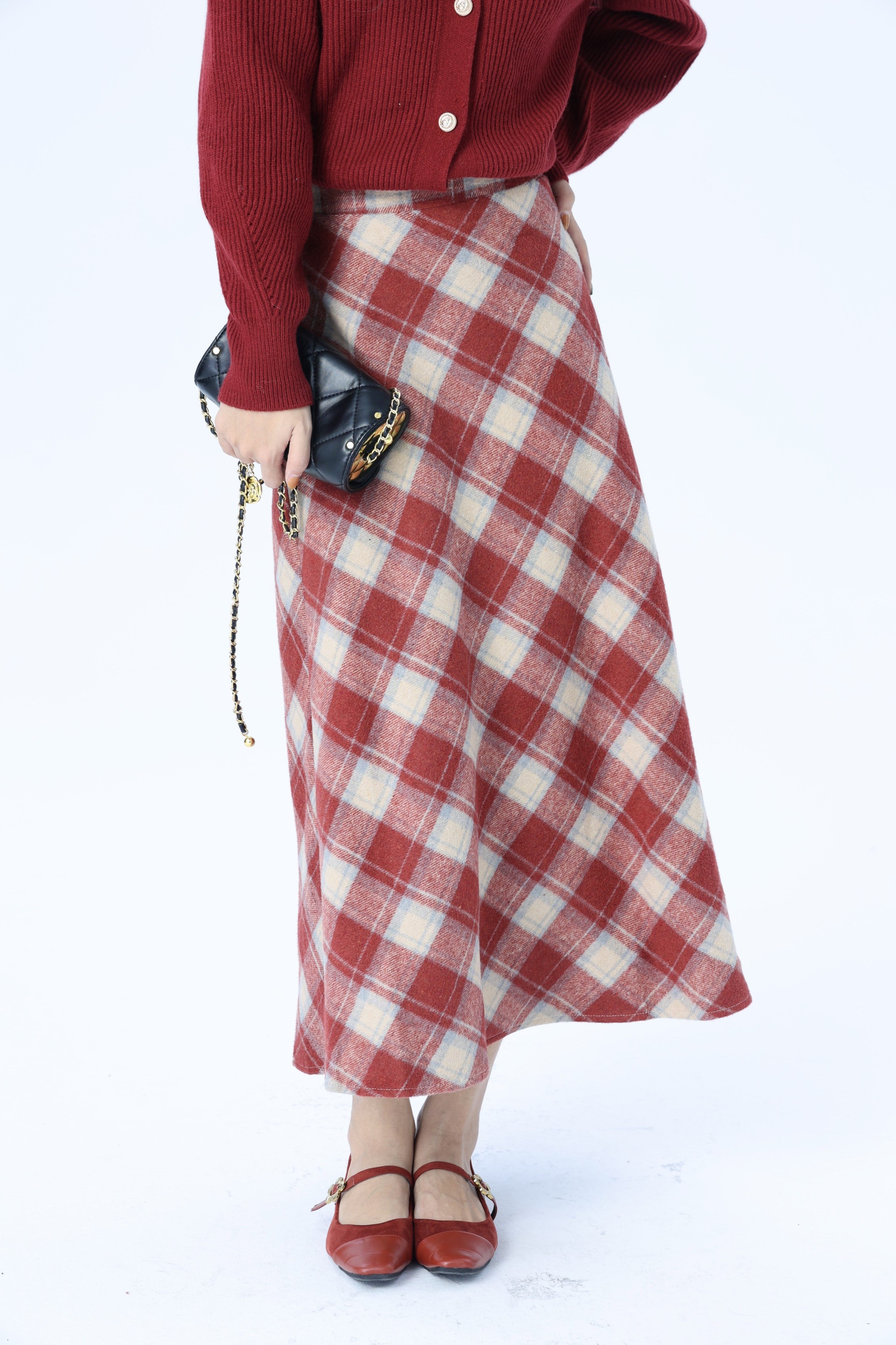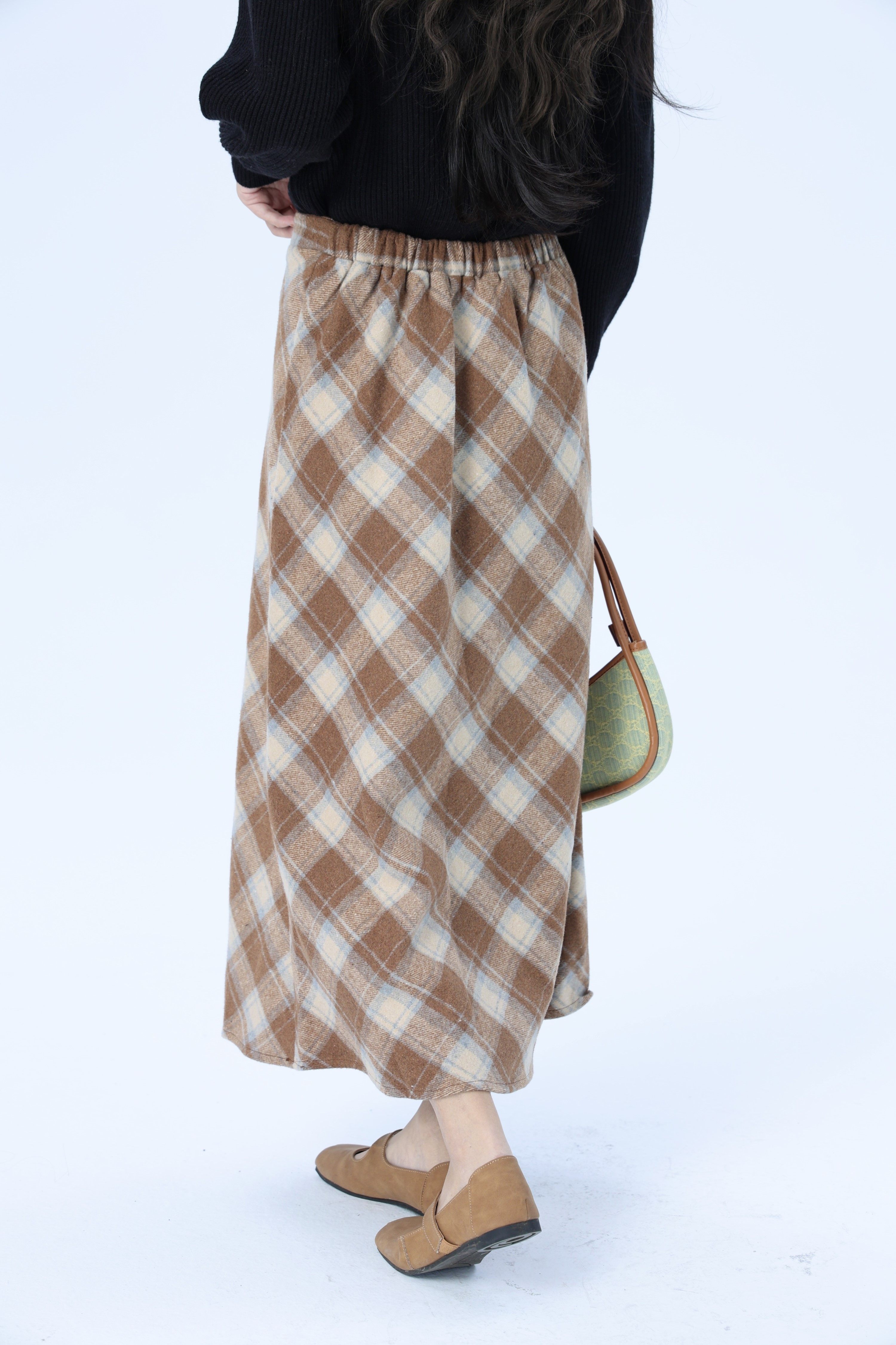 韩系超好看毛呢格子半身裙子女秋冬季 高腰显瘦a字长裙 2025年新款