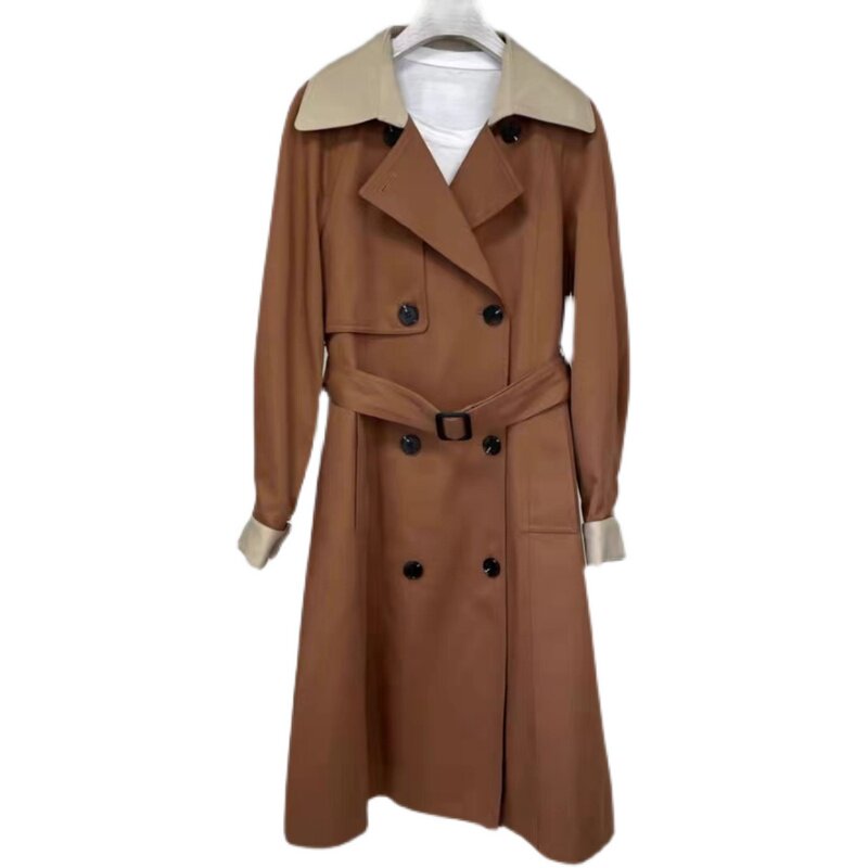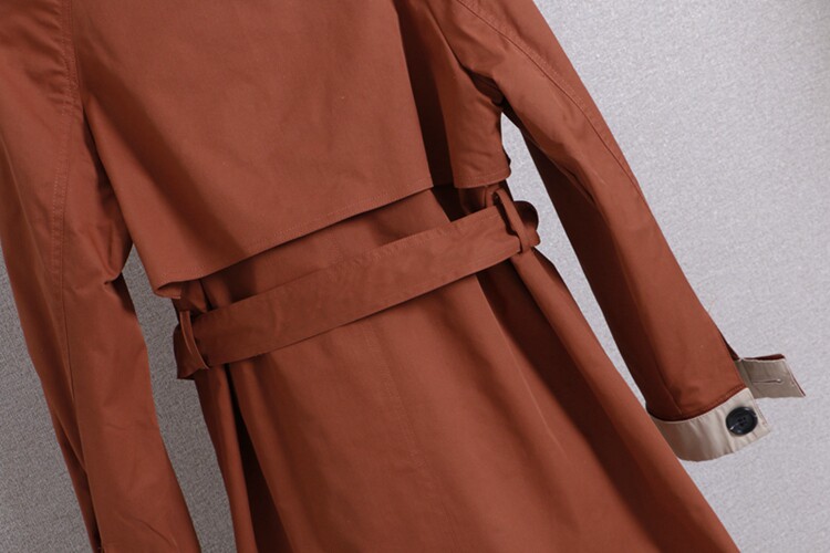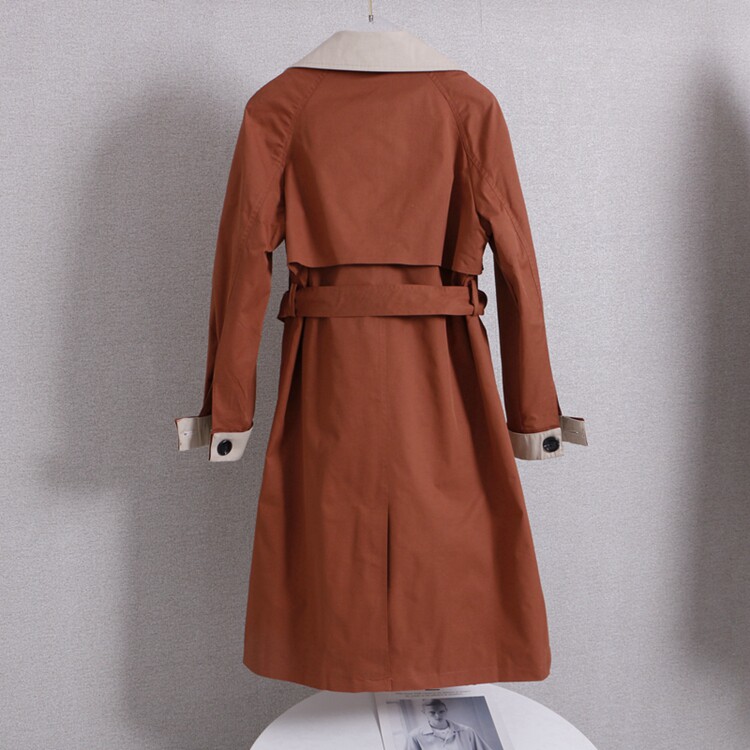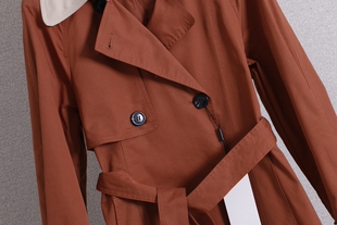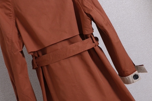 显瘦中长款 领双排扣系带修身 风衣外套 撞色西装 D434时尚