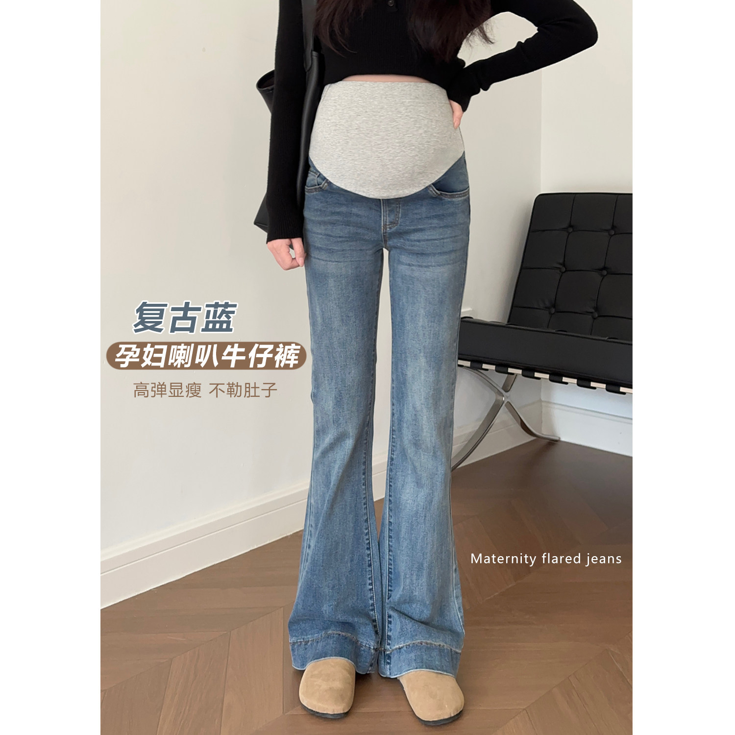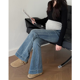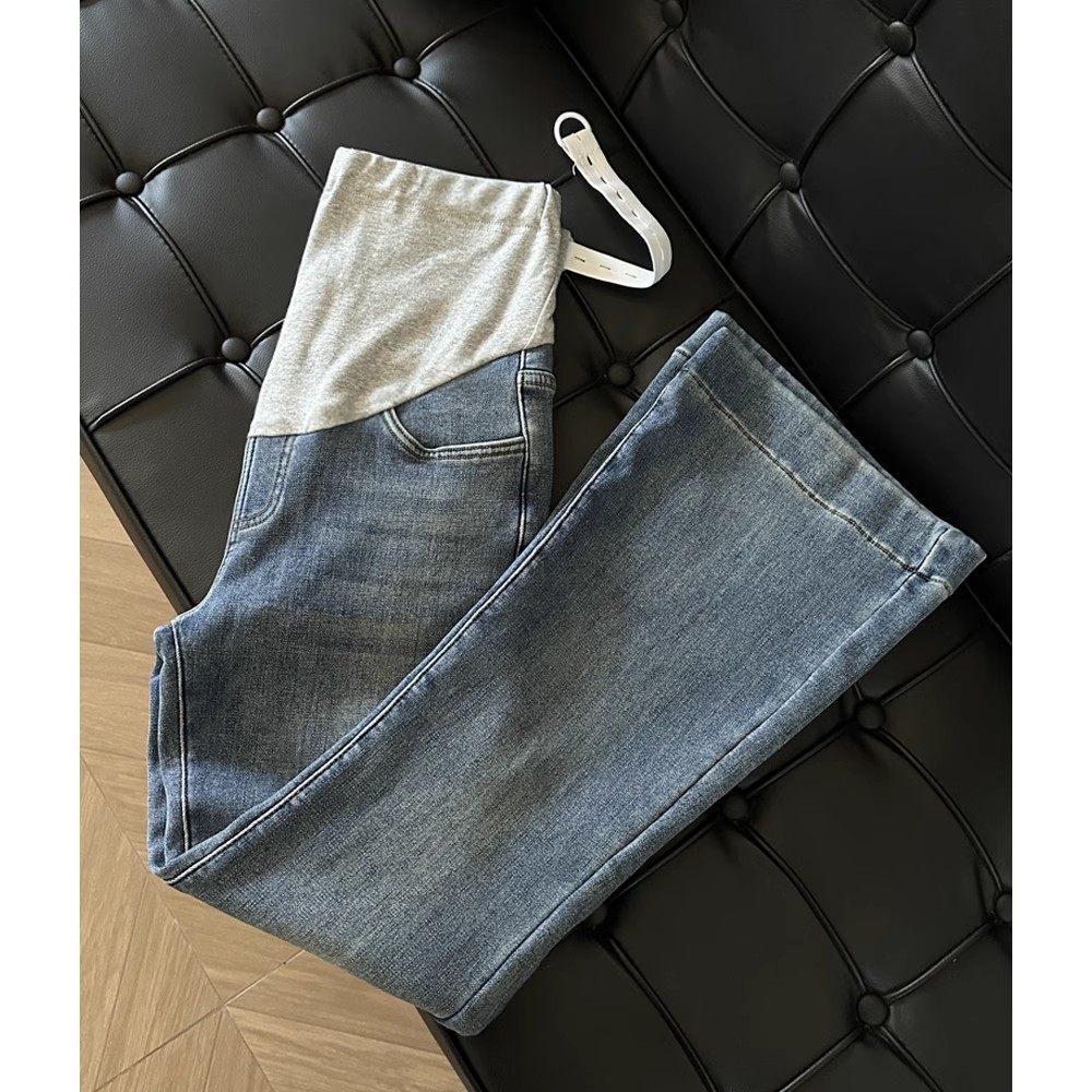 女孕期秋装 孕妇牛仔喇叭裤 微喇裤 外穿加绒加厚不勒肚子大码 秋冬季