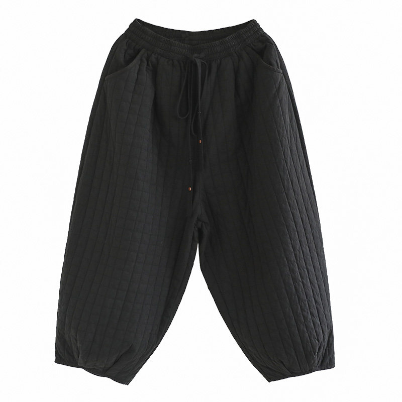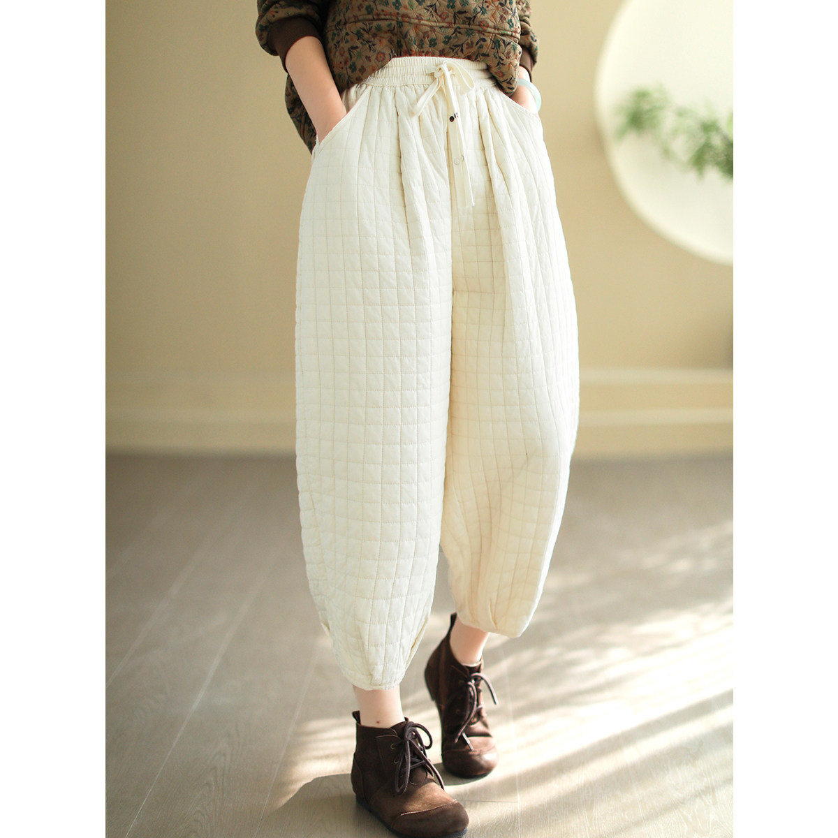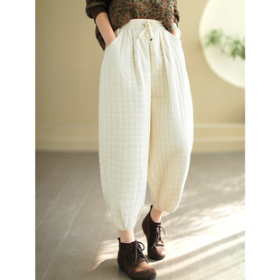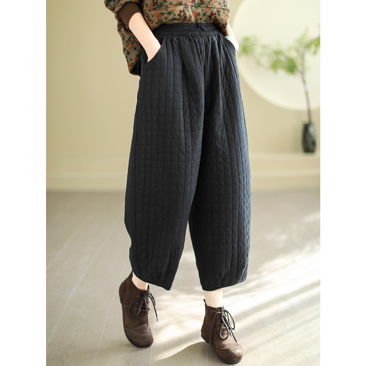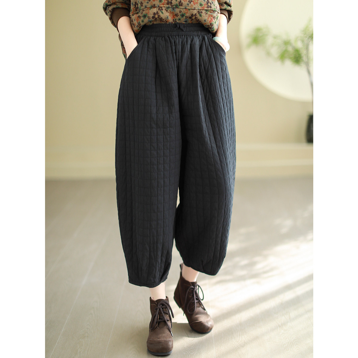 纯色九分哈伦裤 女松紧腰宽松灯笼裤 全棉夹棉加厚棉裤 代勒原创冬季
