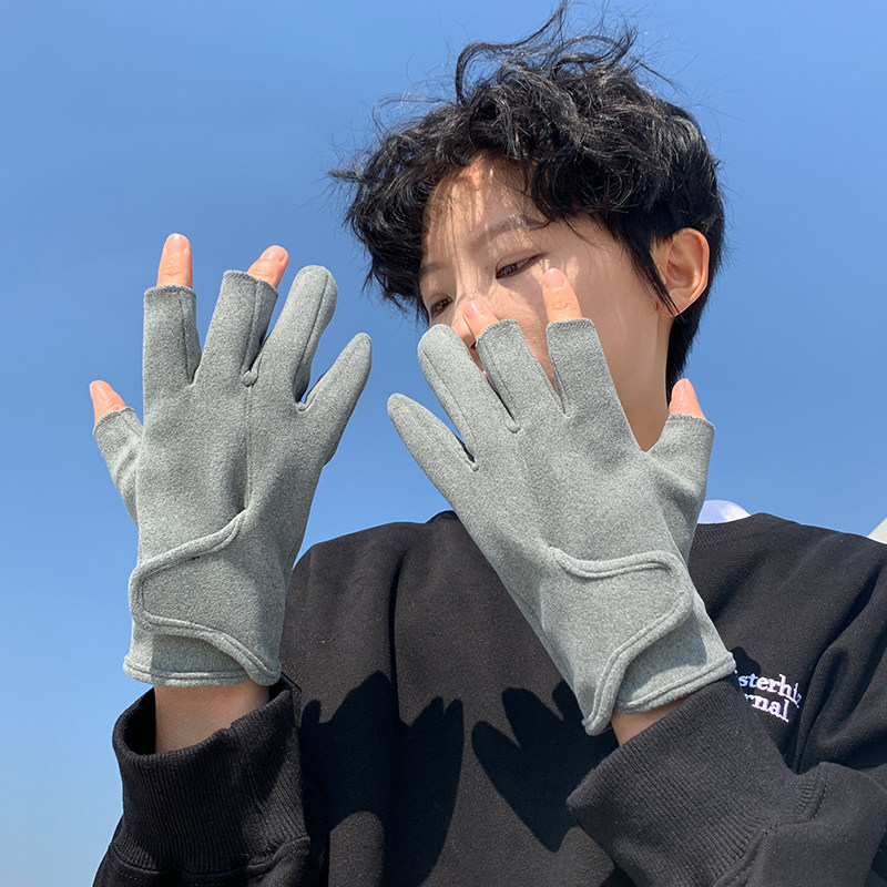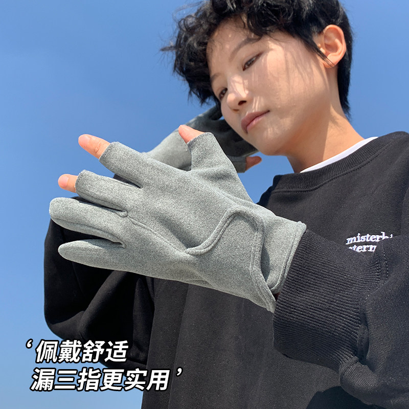 大码 防风保暖大手挂脖绳 手闷子手套女加绒加厚麂皮绒连指手套冬季