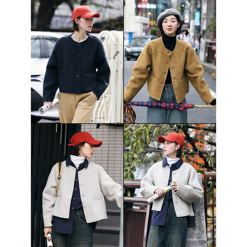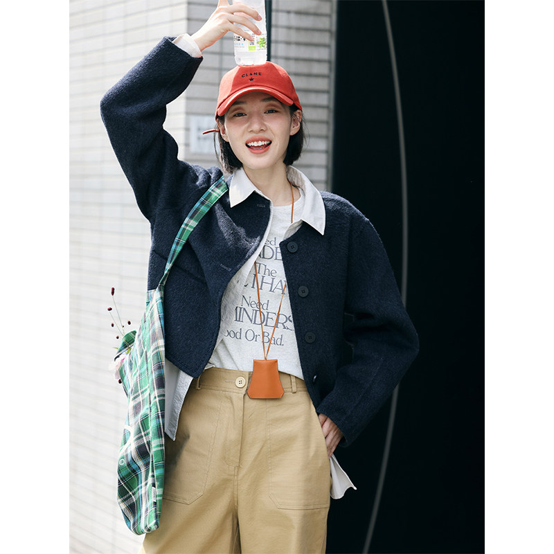 鹿与飞鸟性价比双面呢绵羊毛休闲三色小个子短款 大衣毛呢外套5457