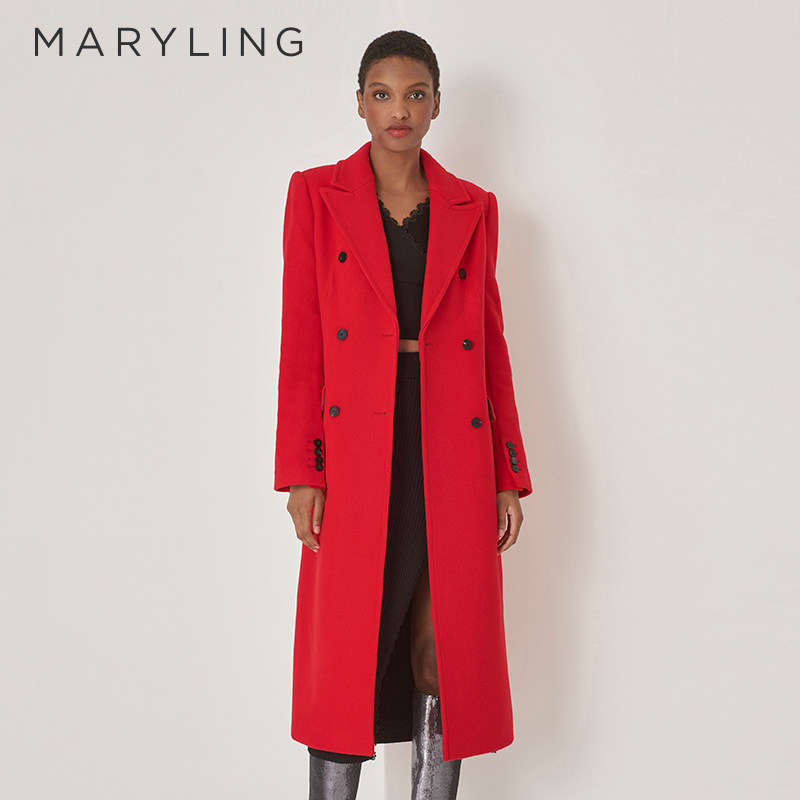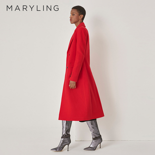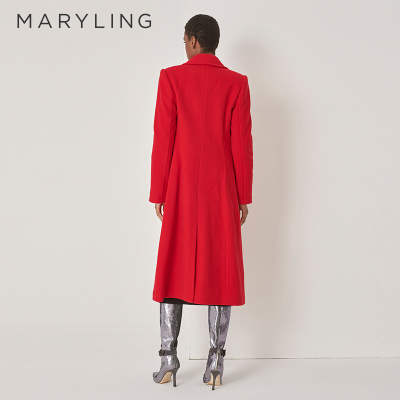 长款 红色戗驳领H廓型西装 大衣A1DIW93370 新品 MARYLING玛俪琳冬季